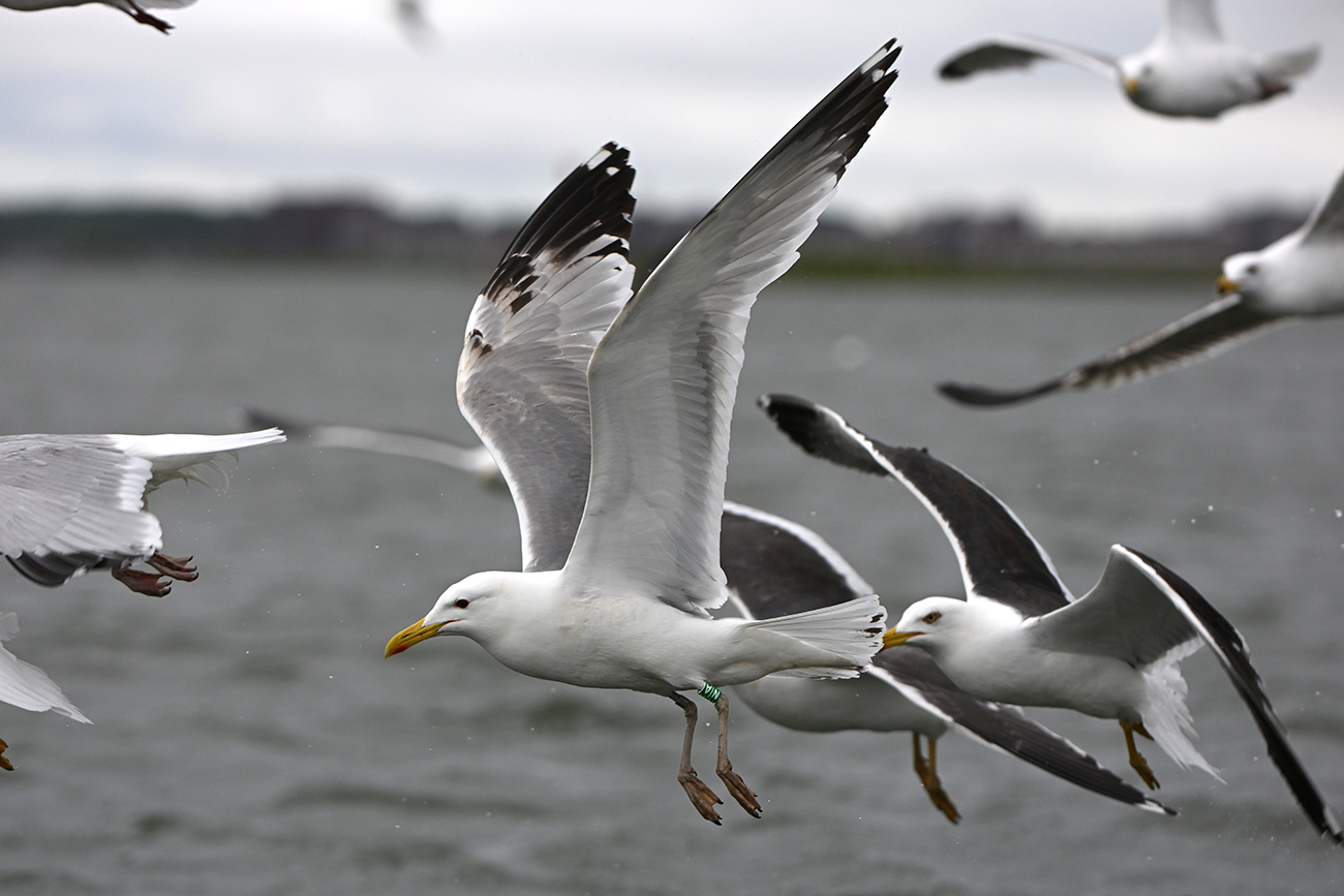 below: Caspian Gull cachinnans N|A 4CY, November 26 2025, Lelystad, the Netherlands. Picture: Folko van den Brink.