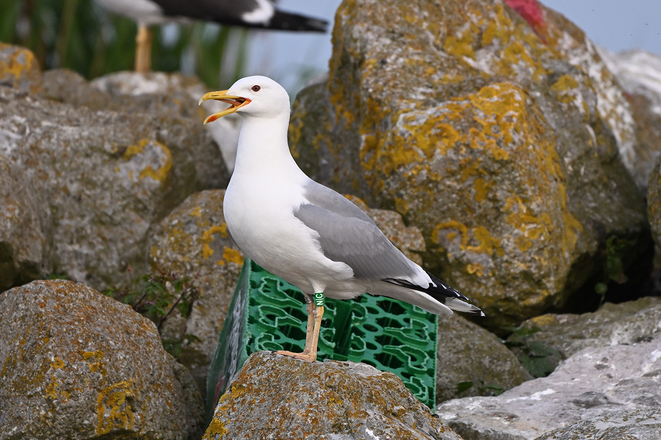 Tibia G-N|C and metal NLA 5.641.012, ringed as breeding adult Larus cachinnans on April 28 2025 at Lelystad, the Netherlands. Ringed by Roland-Jan Buijs ringing team (Mars Muusse / Thijs Horst / Fred Cottaar).