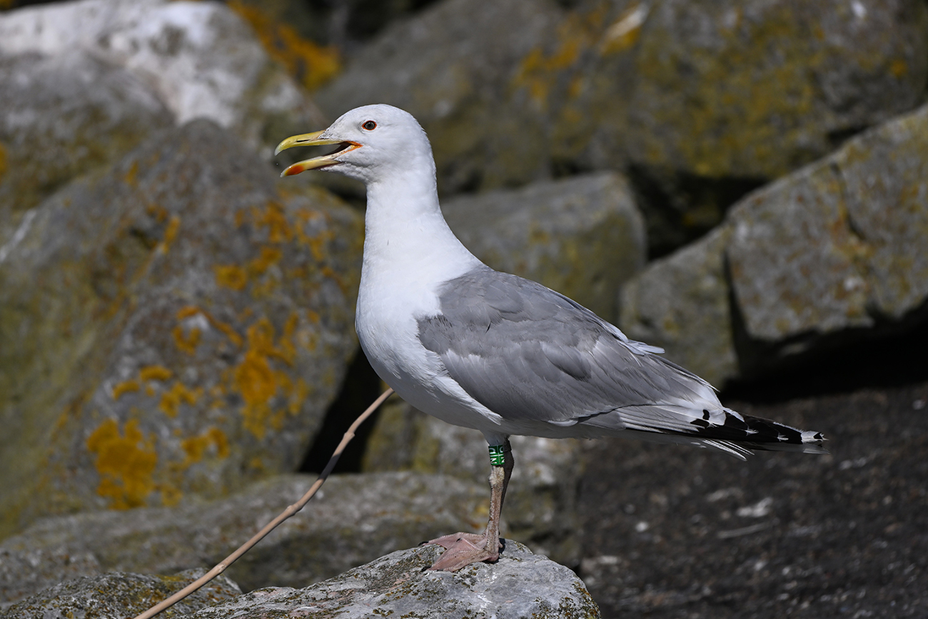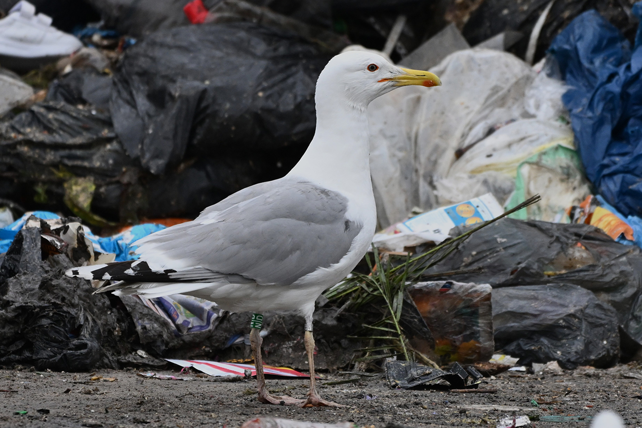 Tibia G-N|D and metal NLA 5.641.013, ringed as breeding adult Larus cachinnans on April 28 2025 at Lelystad, the Netherlands. Ringed by Roland-Jan Buijs ringing team (Mars Muusse / Thijs Horst / Fred Cottaar).