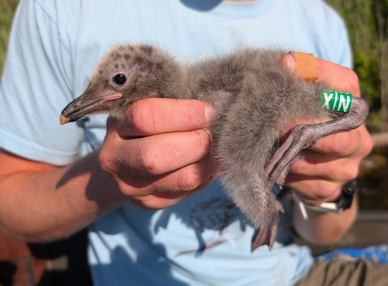 Caspian Gull cachinnans N|X 1CY, 2025, colony Lelystad, the Netherlands. Picture: Picture: Thijs Horst & Mars Muusse.