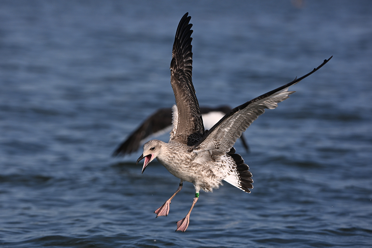 below: Caspian Gull cachinnans N|X 1CY, June 30 2025, colony Lelystad, the Netherlands. Picture: Thijs Horst.