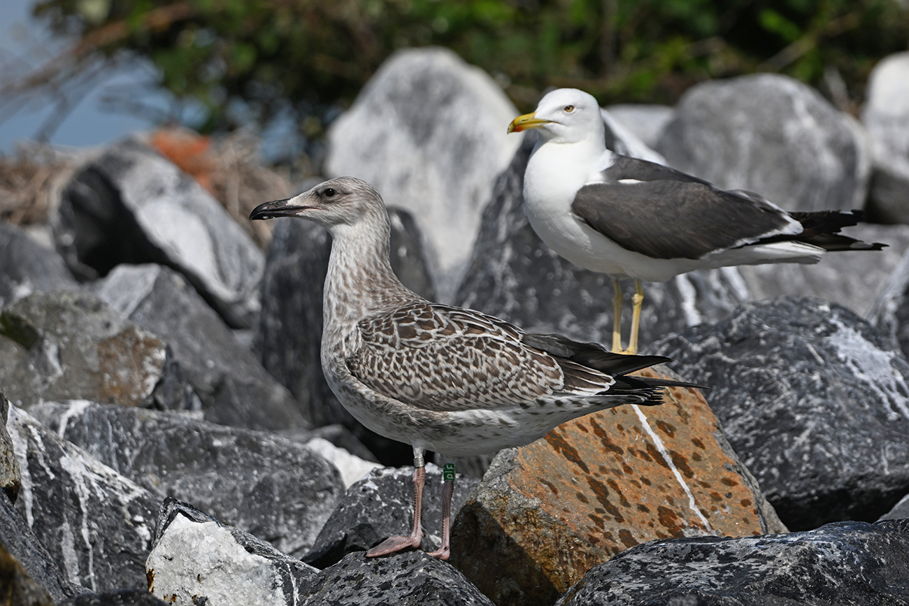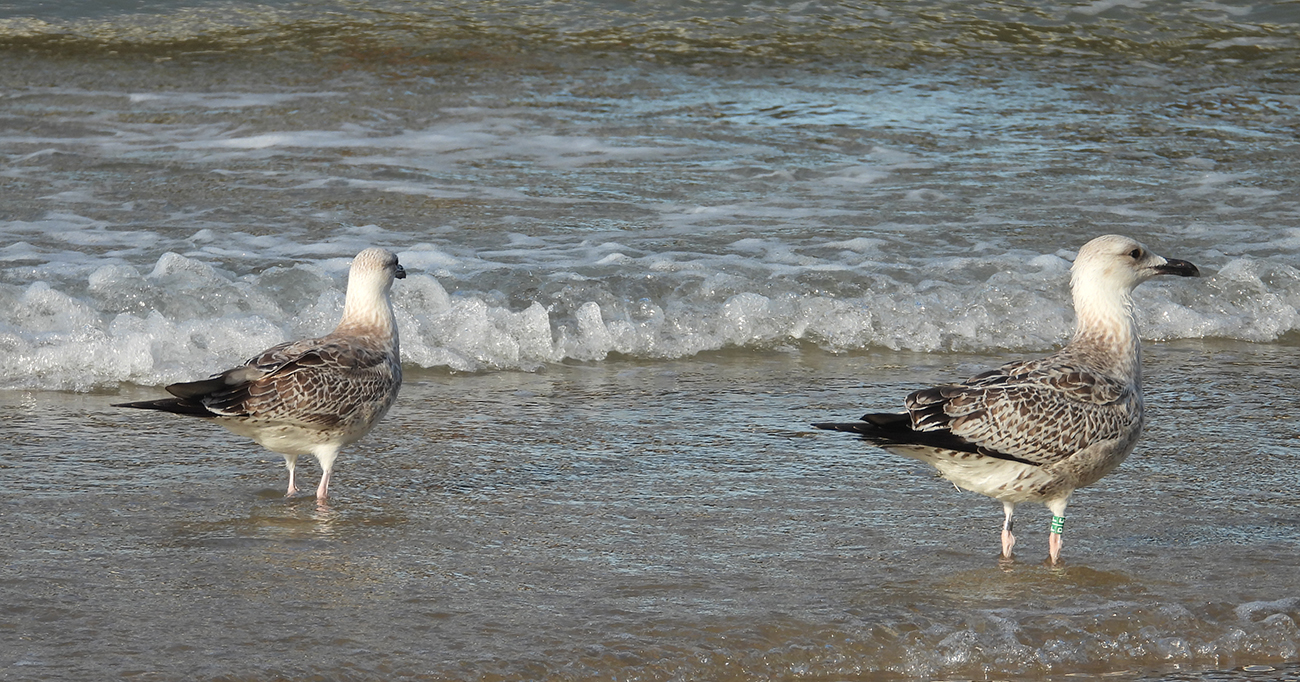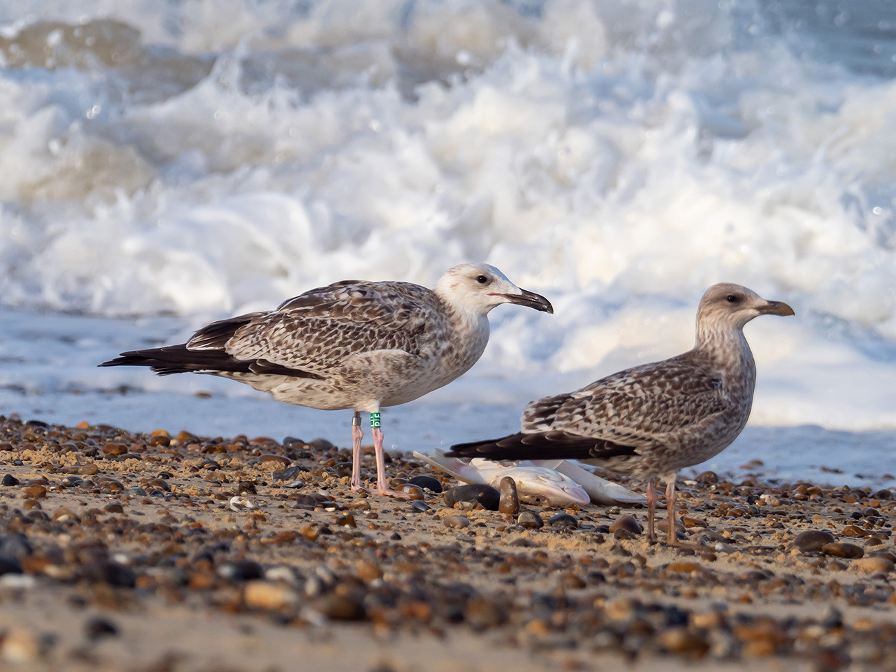 below: Caspian Gull cachinnans P|F 1CY, July 13 2025, colony De Kreupel, the Netherlands. Picture: Thijs Horst & Mars Muusse.