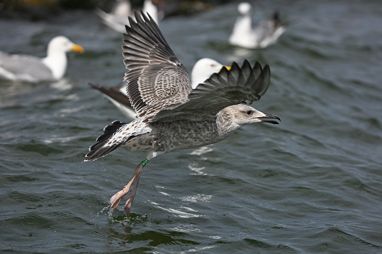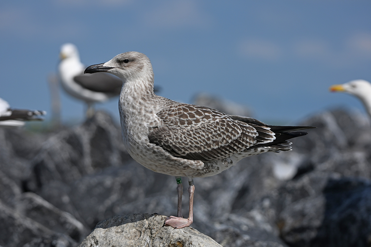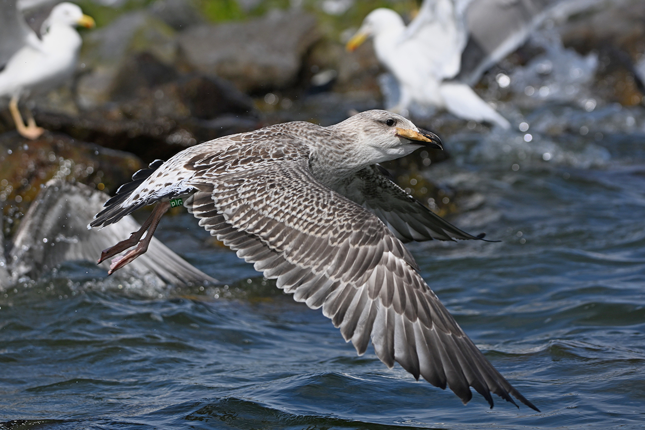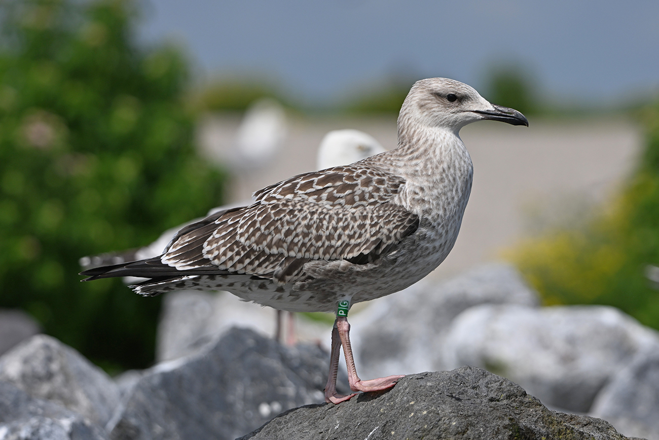 below: Caspian Gull cachinnans P|G 1CY, July 13 2025, colony De Kreupel, the Netherlands. Picture: Thijs Horst & Mars Muusse.