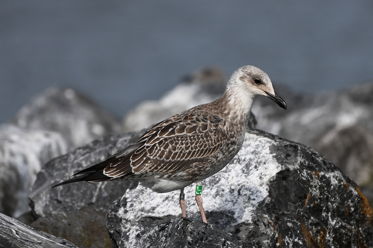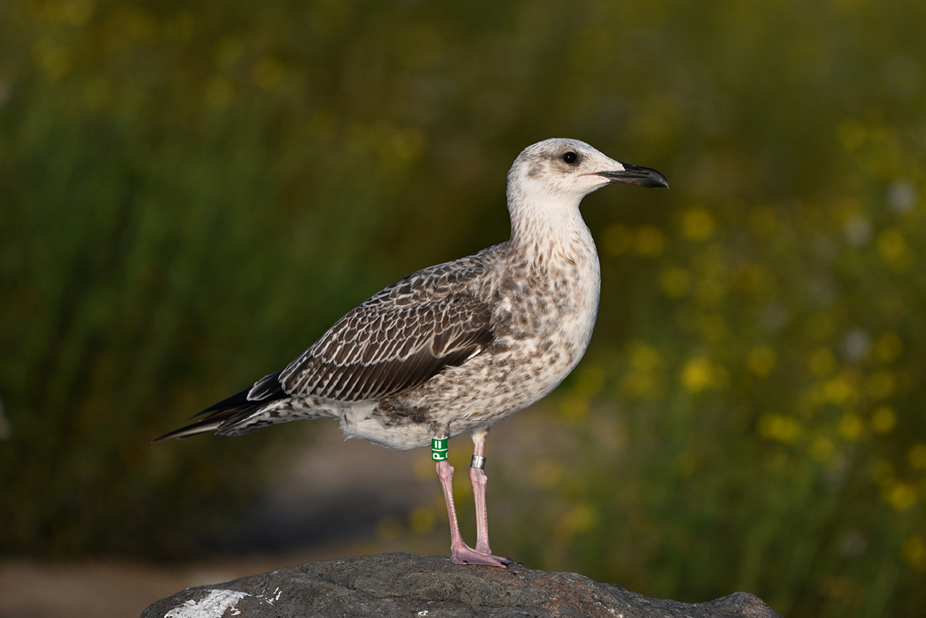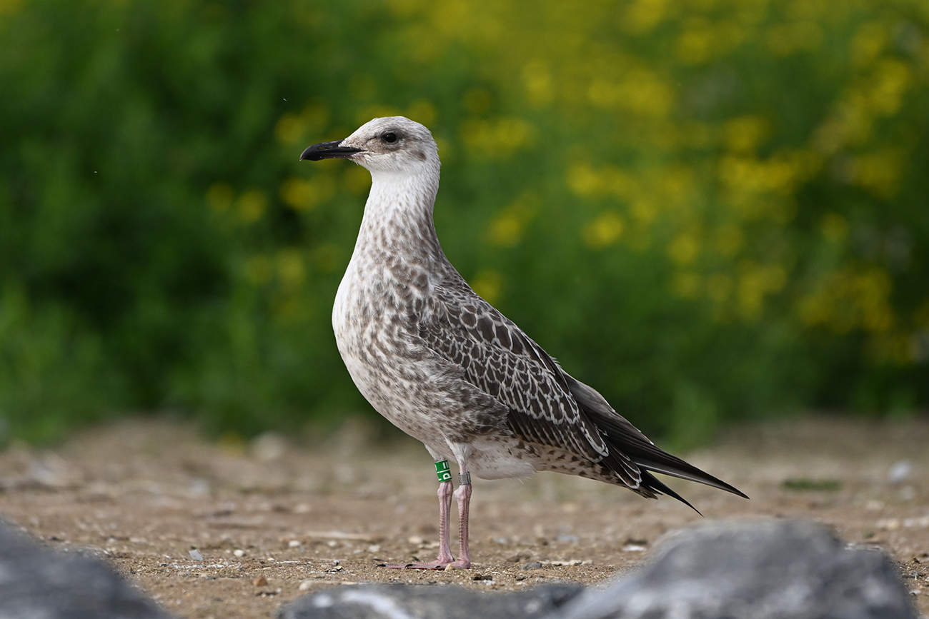 Tibia G-P|= and metal NLA 5.639.020, ringed as pullus Larus cachinnans on May 09 2025 at IJsselmeer (De Kreupel), Noord-Holland, by ringer Leon Kelder.