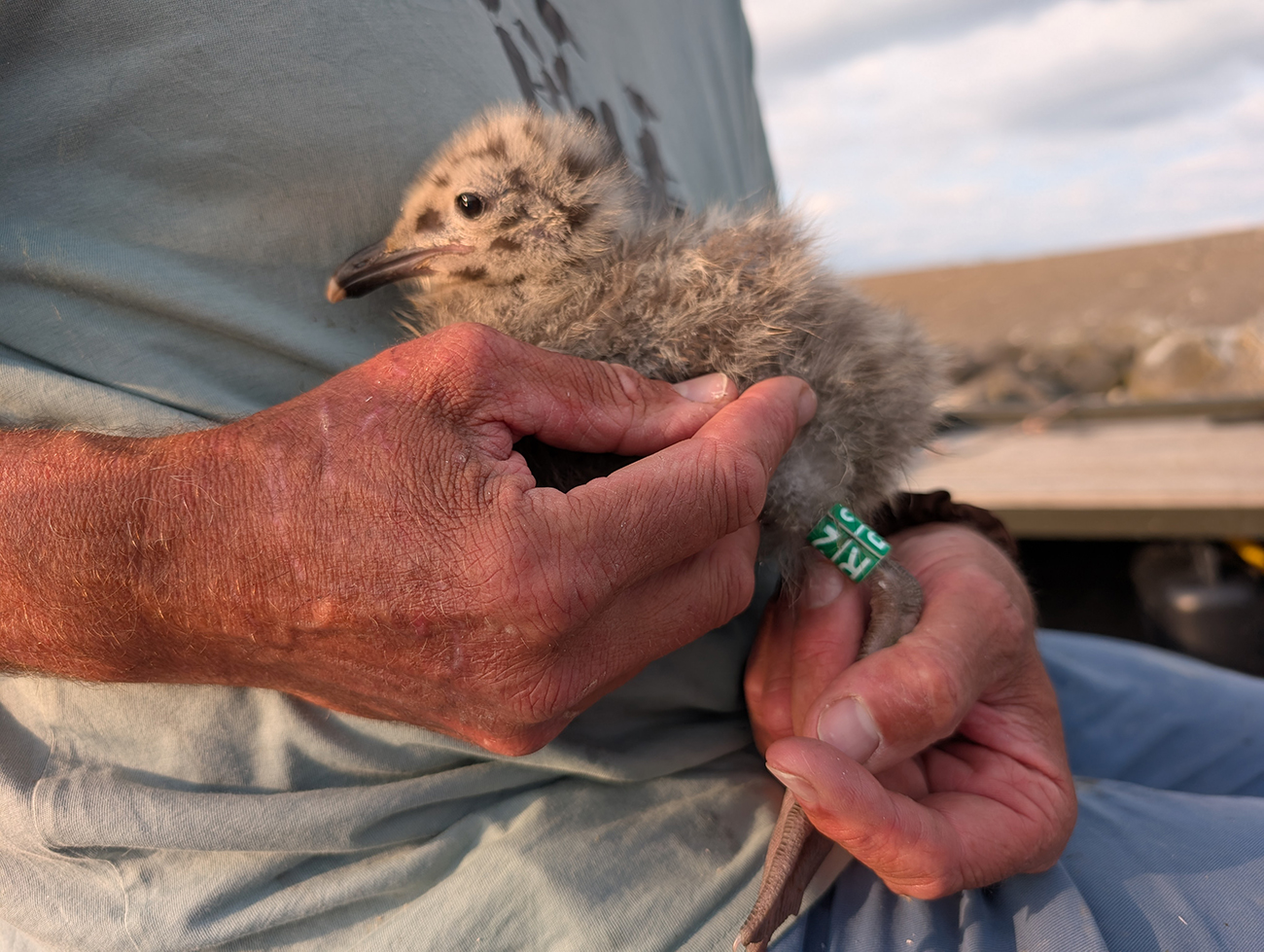 Caspian Gull cachinnans hybrid R|2 1CY, 2025, colony Lelystad, the Netherlands. Picture: Thijs Horst.