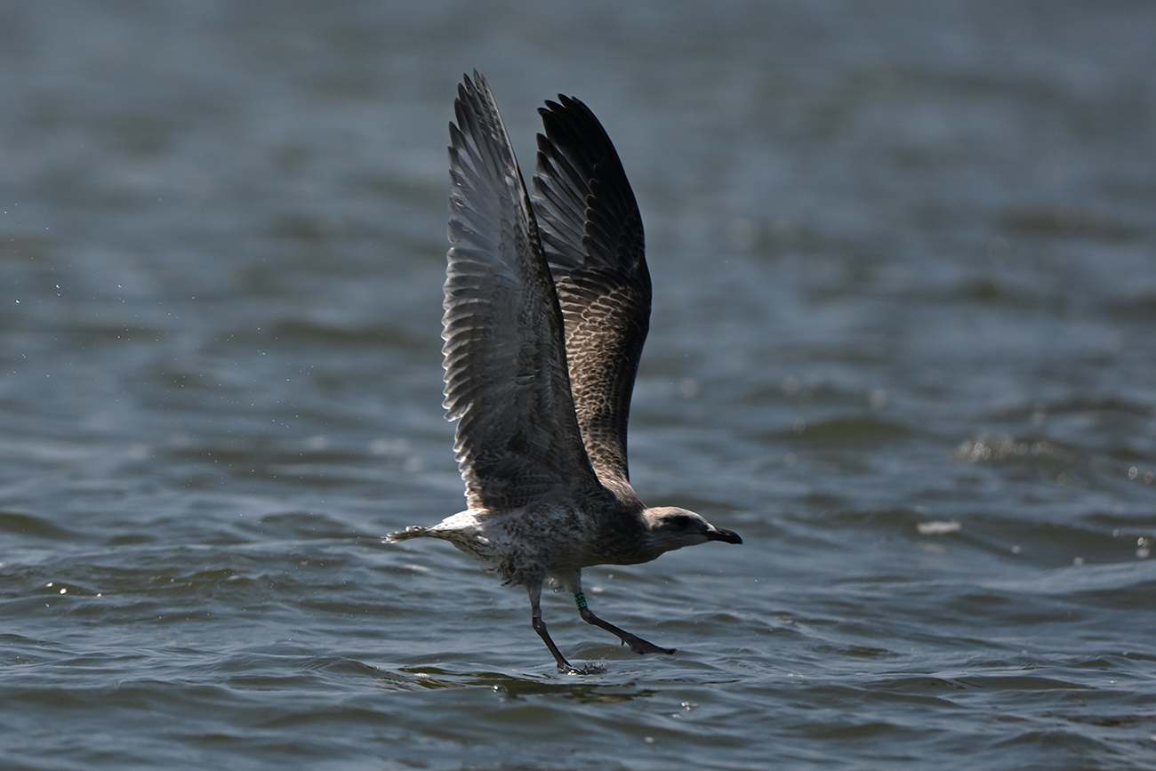 below: Caspian Gull cachinnans hybrid R|2 1CY, June 29 2025, colony Lelystad, the Netherlands. Picture: Thijs Horst.