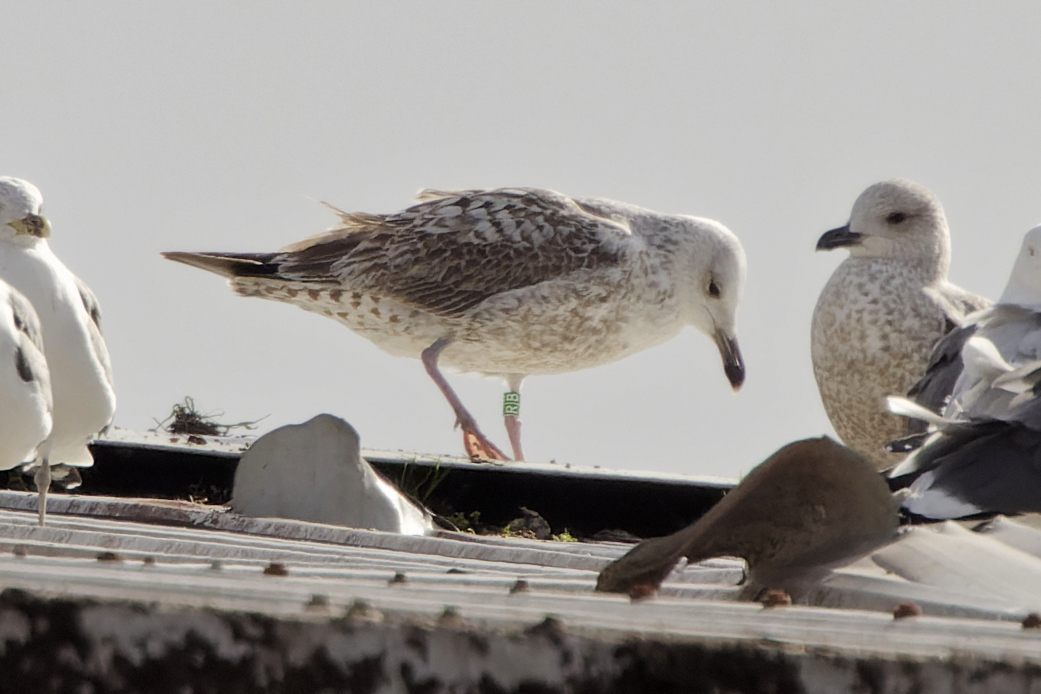 Caspian Gull cachinnans hybrid R|B 1CY-2CY, 2025-2026, the Netherlands & U.K. Picture: Thijs Horst & Stephen Tomlinson.