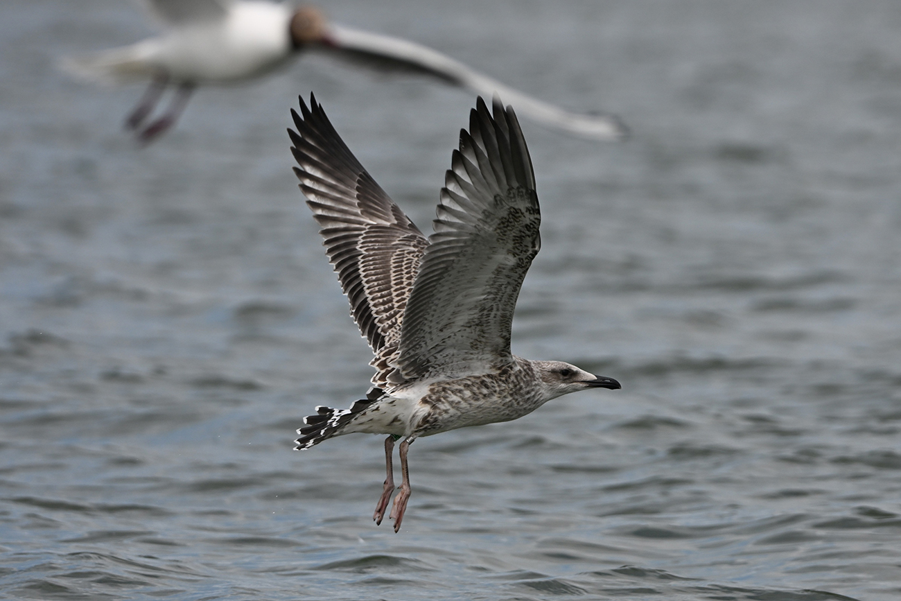 below: Caspian Gull cachinnans R|E 1CY, July 11 2025, colony Lelystad, the Netherlands. Picture: Thijs Horst.