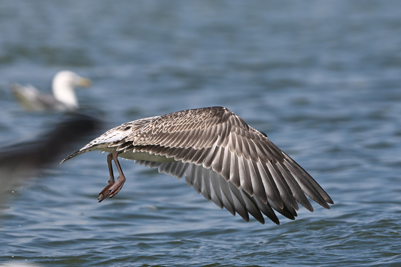 below: Caspian Gull cachinnans R|L 1CY, June 30 2025, colony Lelystad, the Netherlands. Picture: Thijs Horst.