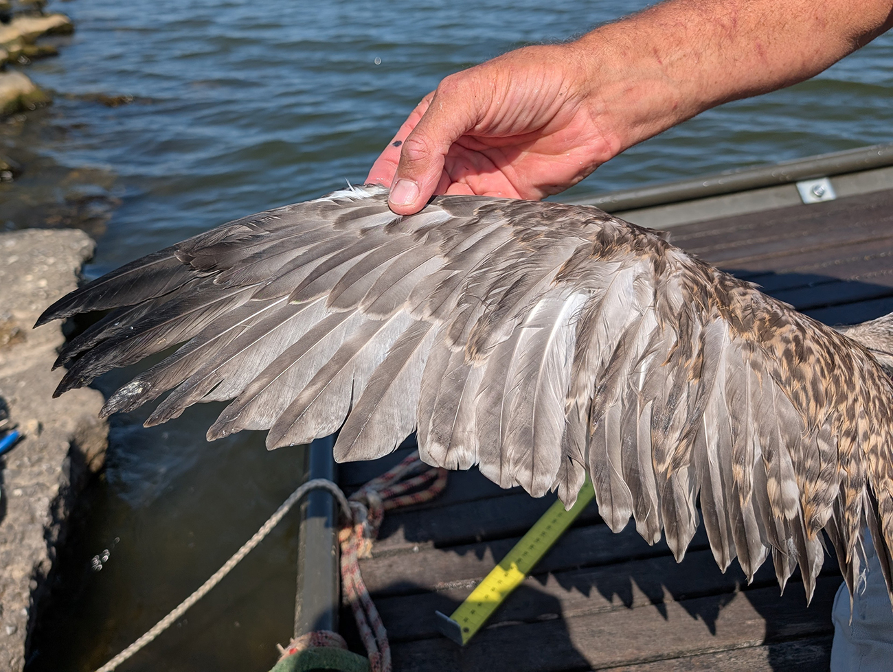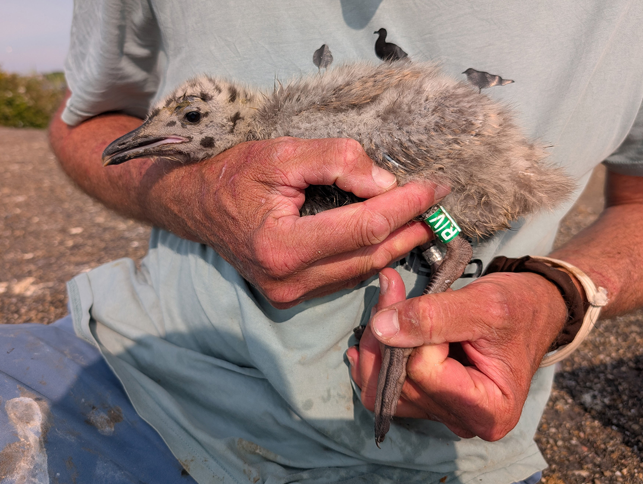 Caspian Gull cachinnans hybrid R|V 1CY, 2025, colony Lelystad, the Netherlands. Picture: Thijs Horst.