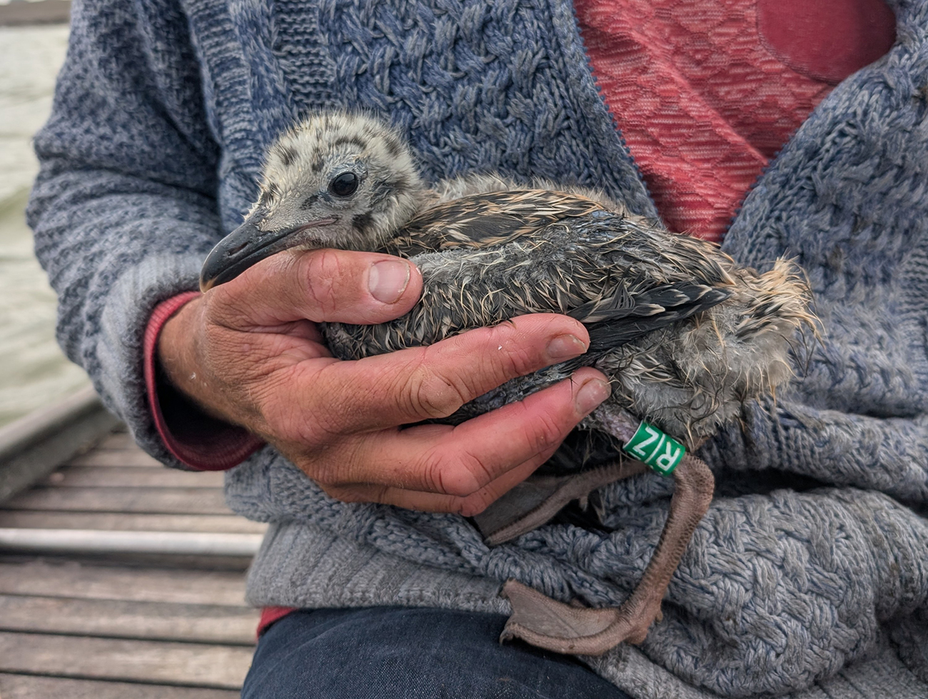 below: Herring Gull argenteus R|Z 1CY, May 31 2025, colony Lelystad, the Netherlands. Picture: Thijs Horst & Mars Muusse.