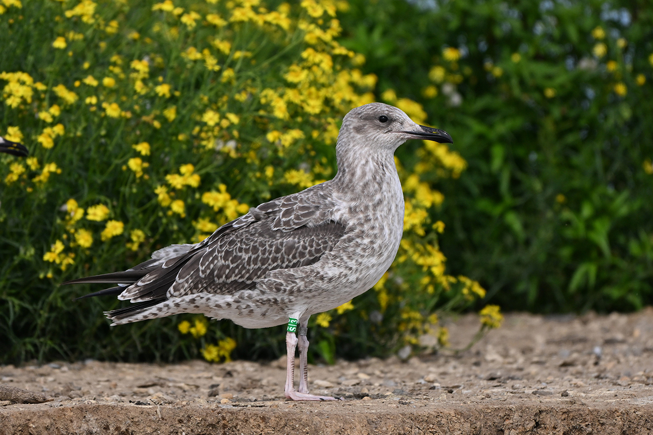 Tibia G-S|3 and metal Arnhem NLA 5.639.059, ringed as pullus Larus cachinnans on May 09 2025 at IJsselmeer (De Kreupel), Holland (5247.00 N 513.00 E), by ringer Leon Kelder.