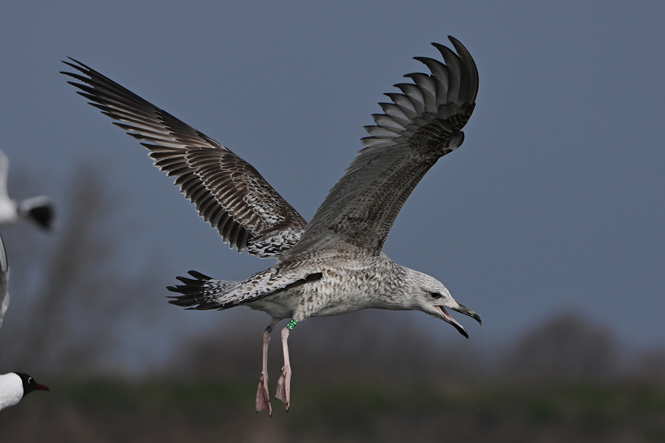 below: Caspian Gull cachinnans S|3 2CY, March 08 2026, colony Lelystad, the Netherlands. Picture: Thijs Horst.