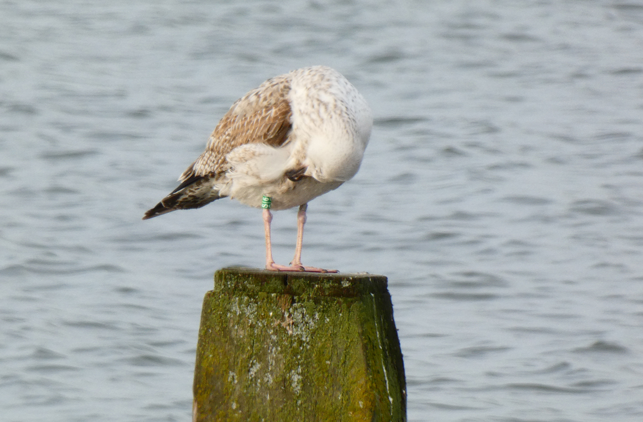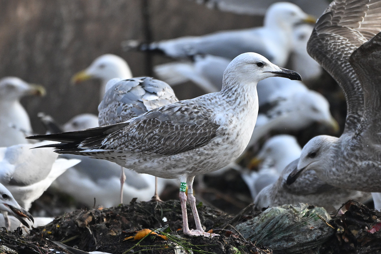 Tibia G-S|6 and metal Arnhem NLA 5.639.062, ringed as pullus Larus cachinnans on May 09 2025 at IJsselmeer (De Kreupel), Holland (5247.00 N 513.00 E), by ringer Leon Kelder.