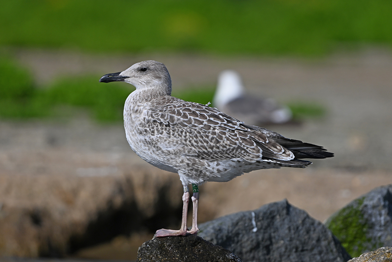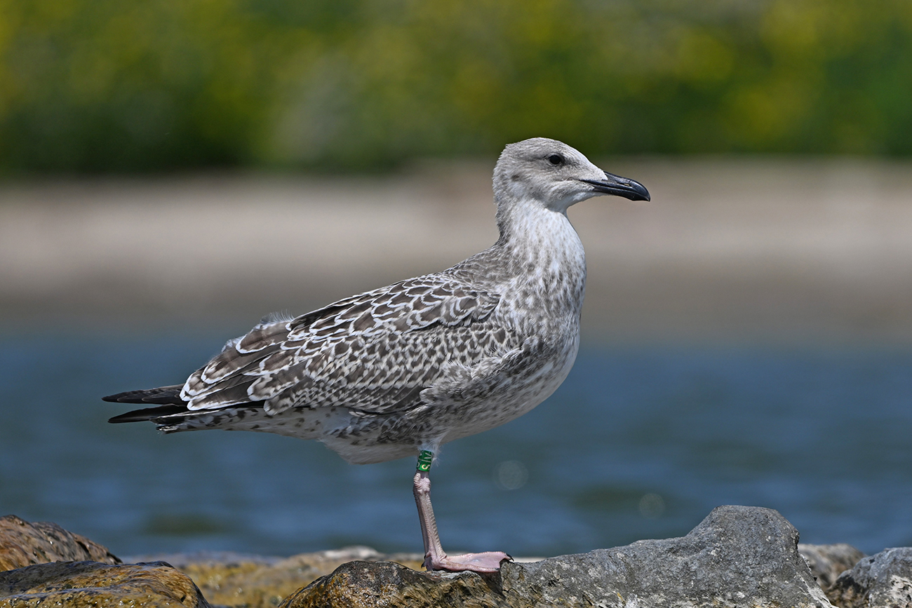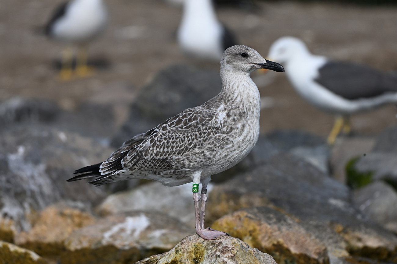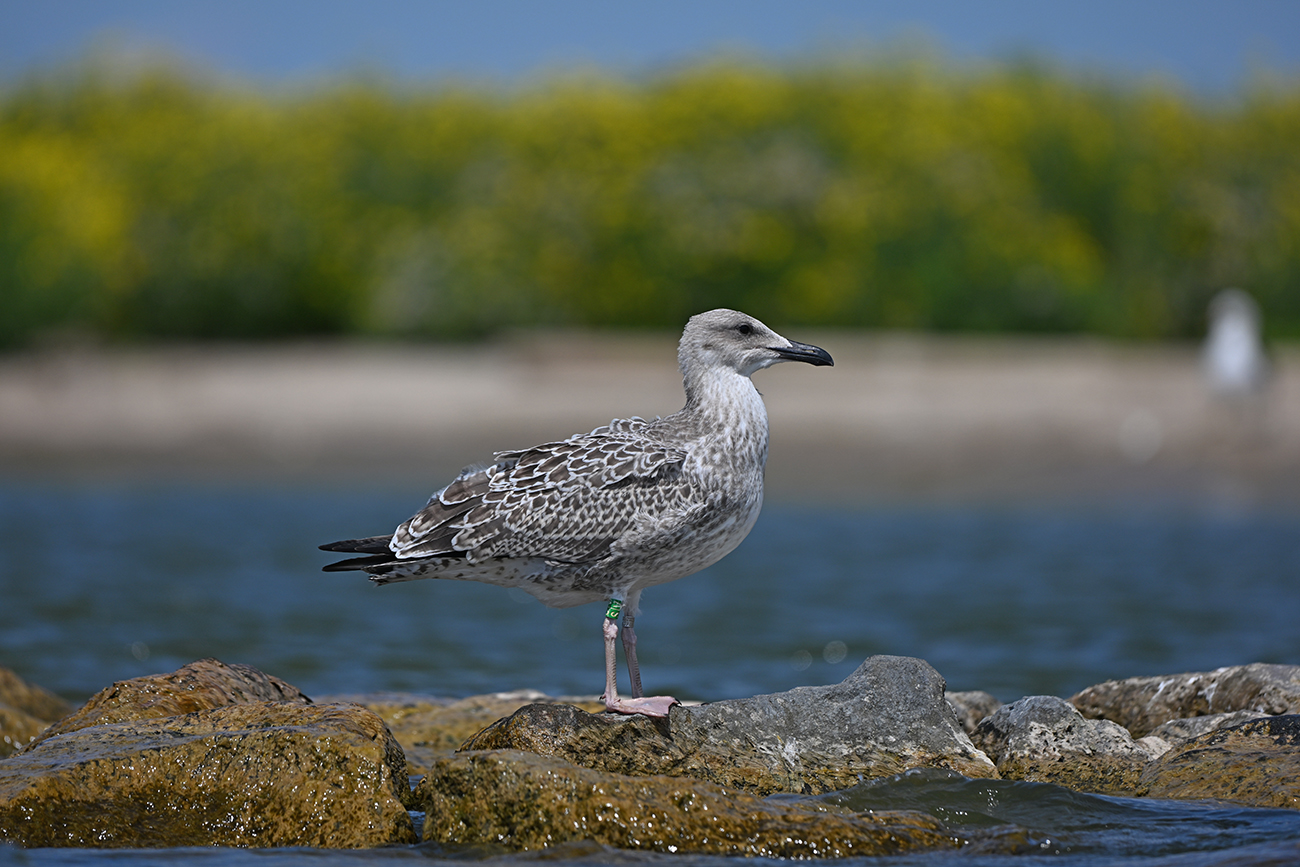 Tibia G-S|V and metal Arnhem NLA 5.639.083, ringed as pullus Larus cachinnans on May 09 2025 at IJsselmeer (De Kreupel), Holland (5247.00 N 513.00 E), by ringer Leon Kelder.