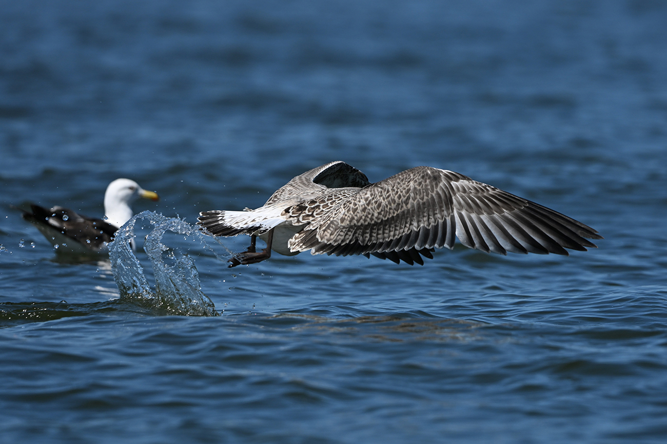 below: Caspian Gull cachinnans T|5 1CY, June 30 2025, colony Lelystad, the Netherlands. Picture: Thijs Horst.