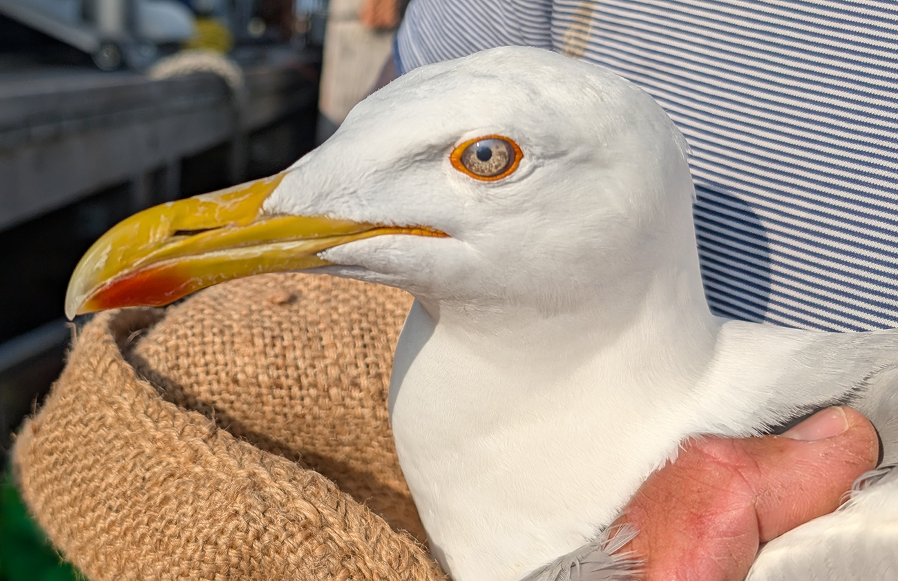 below: Caspian Gull cachinnans T|9 adult, May 30 2025, colony Lelystad, the Netherlands. Picture: Thijs Horst & Mars Muusse.