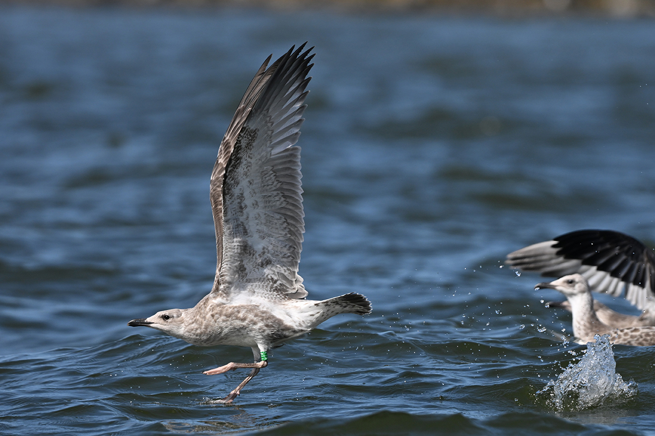 below: Caspian Gull cachinnans T|J 1CY, June 29 2025, colony Lelystad, the Netherlands. Picture: Thijs Horst.