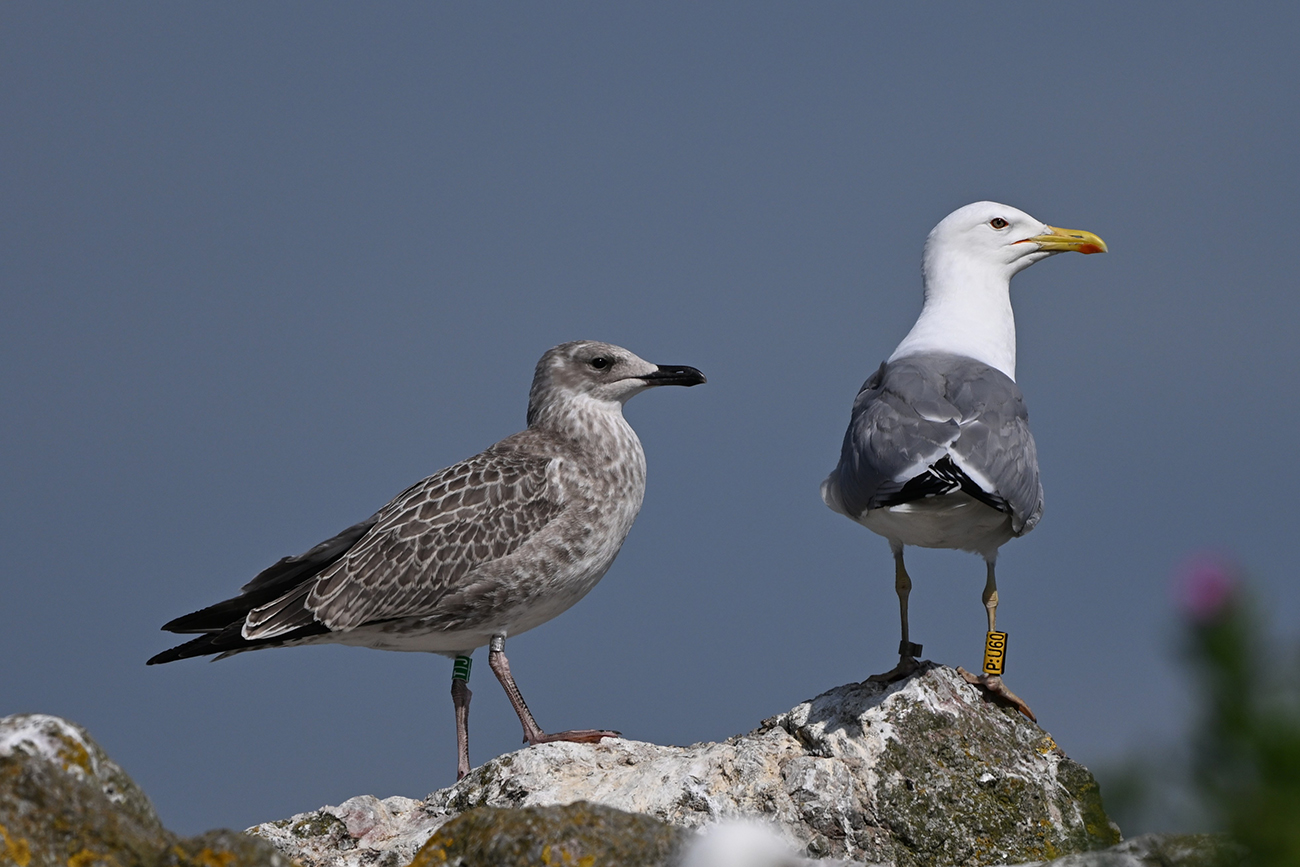 below: Caspian Gull cachinnans T|J 1CY, May 13 2025, colony Lelystad, the Netherlands. Picture: Thijs Horst & Mars Muusse.