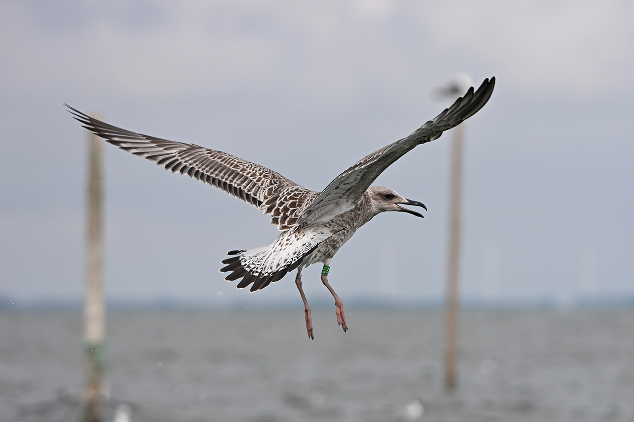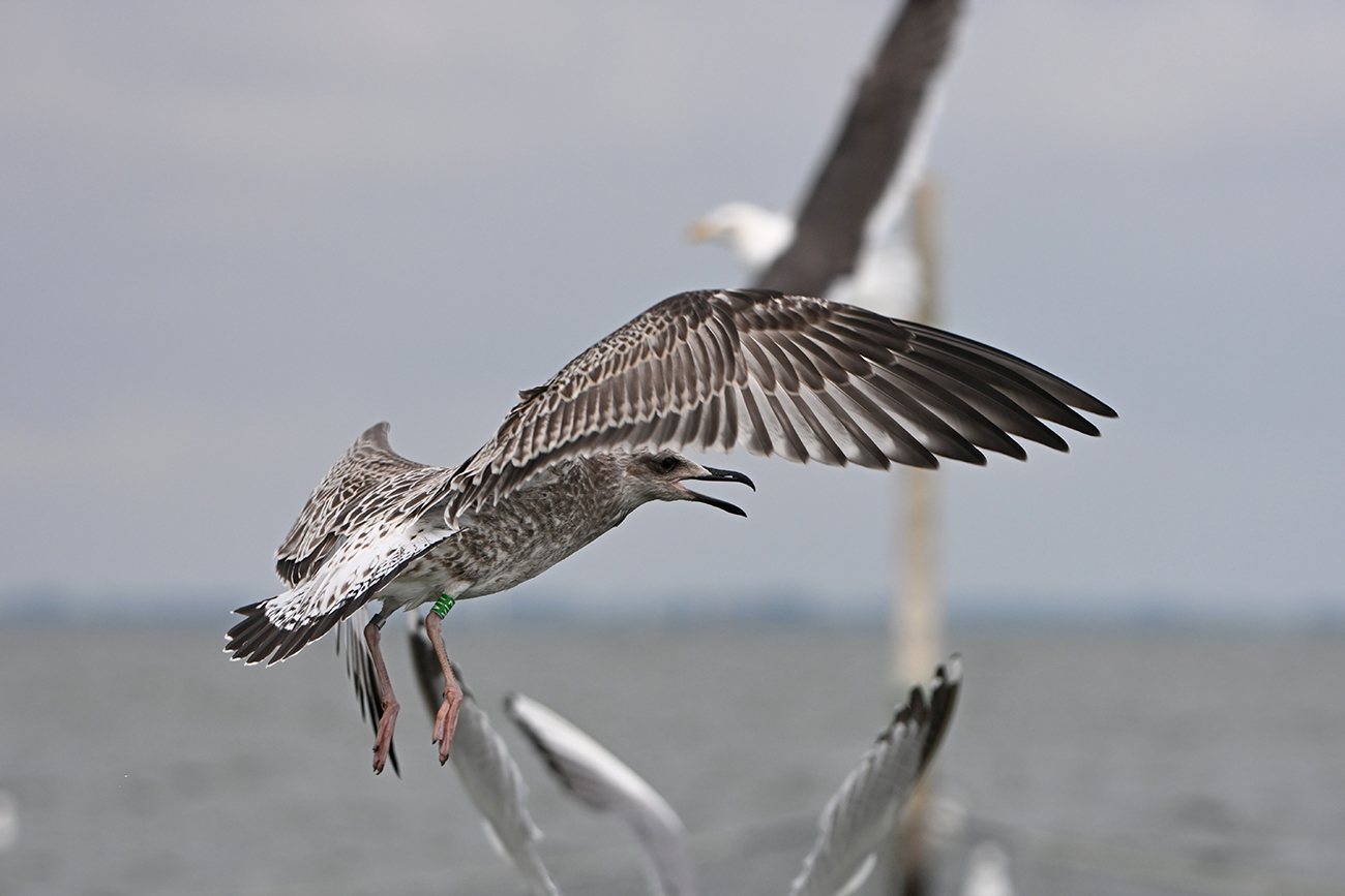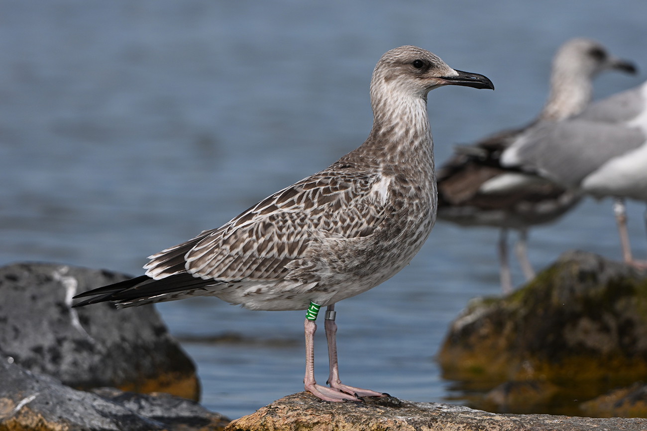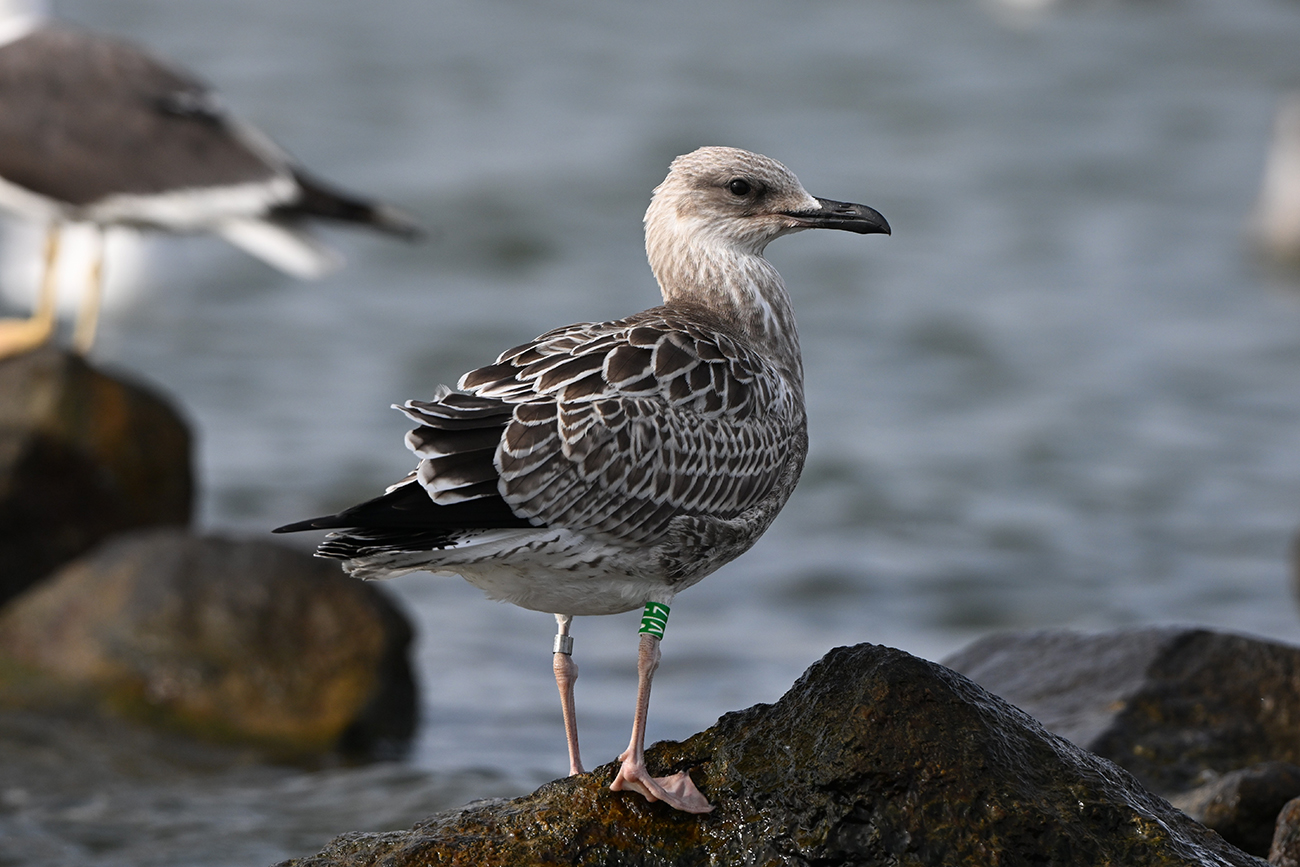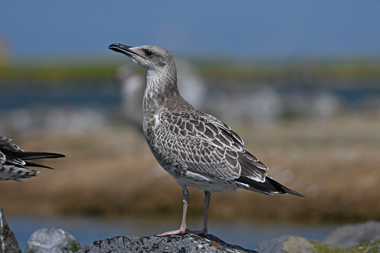 Tibia G-V|7 and metal Arnhem NLA 5.639.097, ringed as pullus Larus cachinnans on May 09 2025 at IJsselmeer (De Kreupel), Holland (5247.00 N 513.00 E), by ringer Leon Kelder.