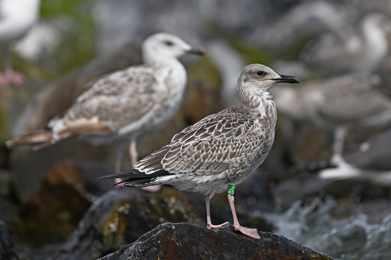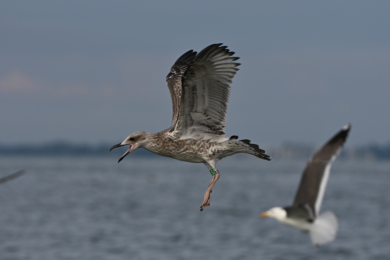 below: Caspian Gull cachinnans V|7 1CY, July 13 2025, colony De Kreupel, the Netherlands. Picture: Thijs Horst & Mars Muusse.