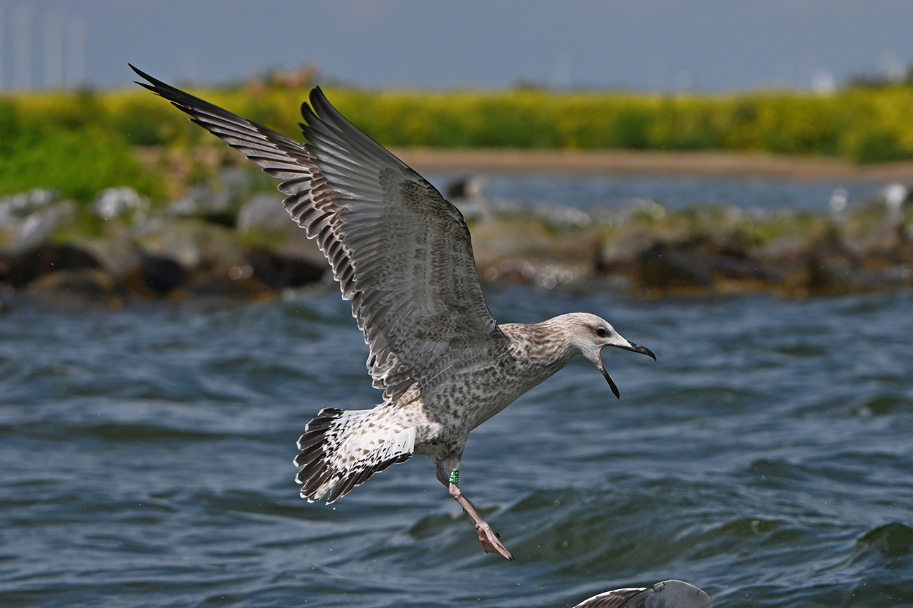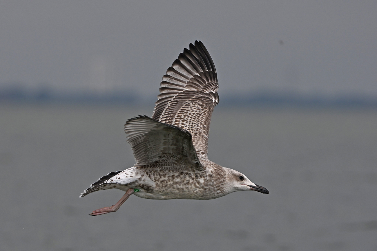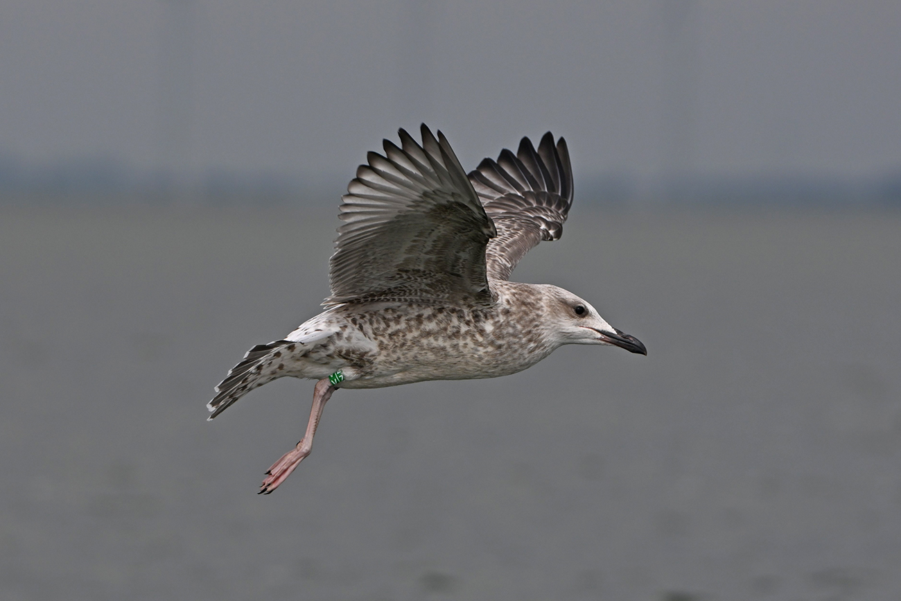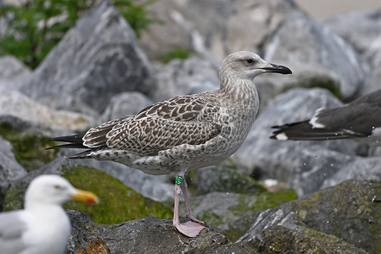 Tibia G-V|Z and metal Arnhem NLA 5.639.122, ringed as pullus Larus cachinnans on May 09 2025 at IJsselmeer (De Kreupel), Holland (5247.00 N 513.00 E), by ringer Leon Kelder.