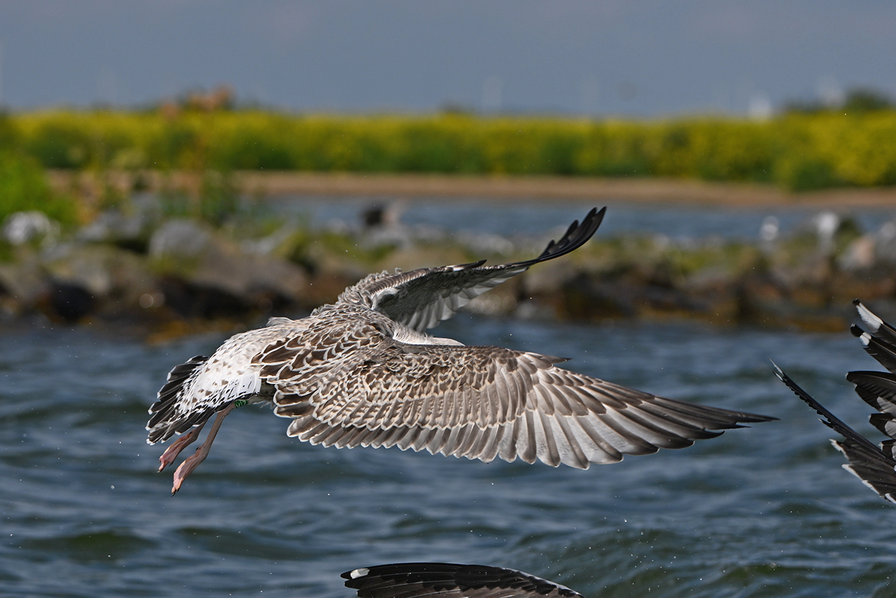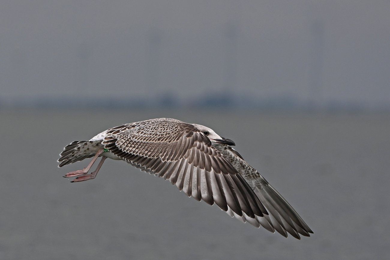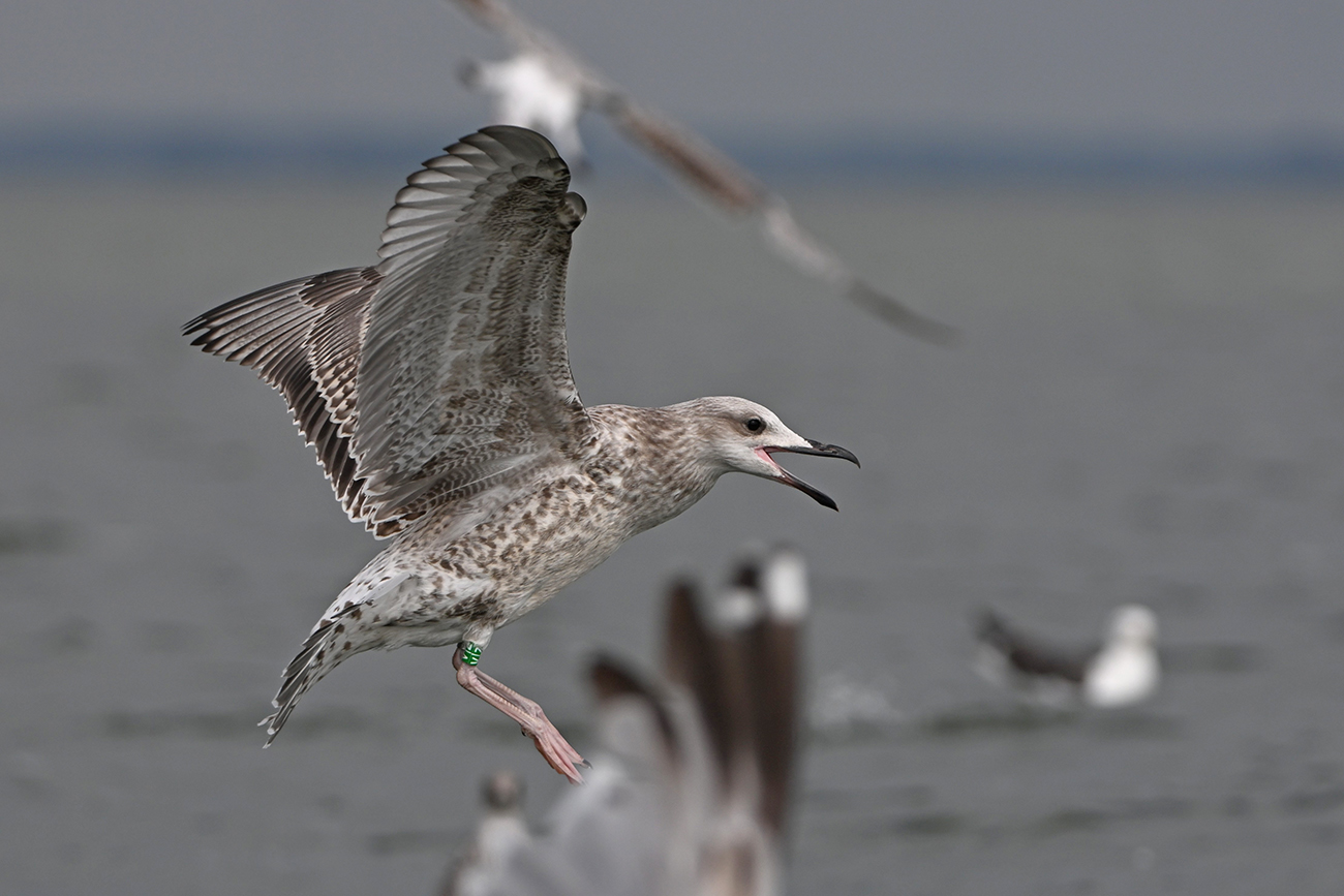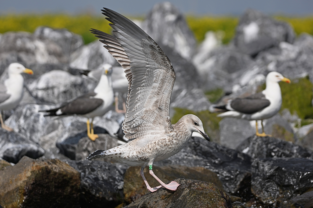 Tibia G-V|Z and metal Arnhem NLA 5.639.122, ringed as pullus Larus cachinnans on May 09 2025 at IJsselmeer (De Kreupel), Holland (5247.00 N 513.00 E), by ringer Leon Kelder.