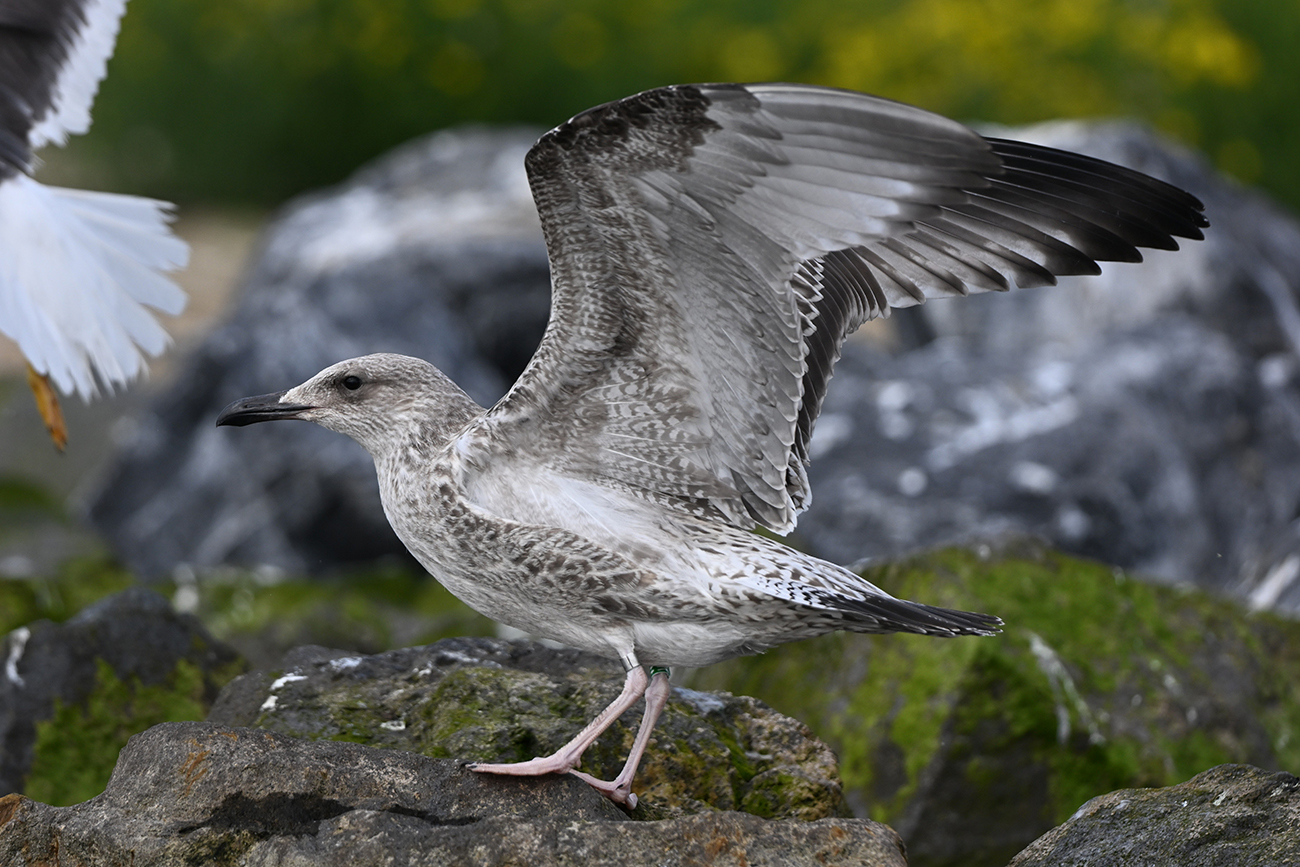 below: Caspian Gull cachinnans W|K 1CY, July 18 2025, colony De Kreupel, the Netherlands. Picture: Thijs Horst & Mars Muusse.