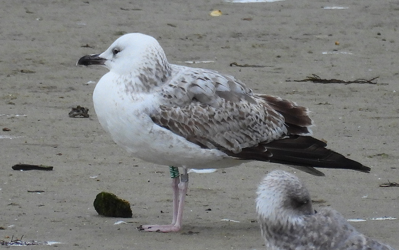 below: Caspian Gull cachinnans W|M 1CY, December 24 2025, San Cibrao - A Coruña, Spain. Picture: Lucas Rouco.