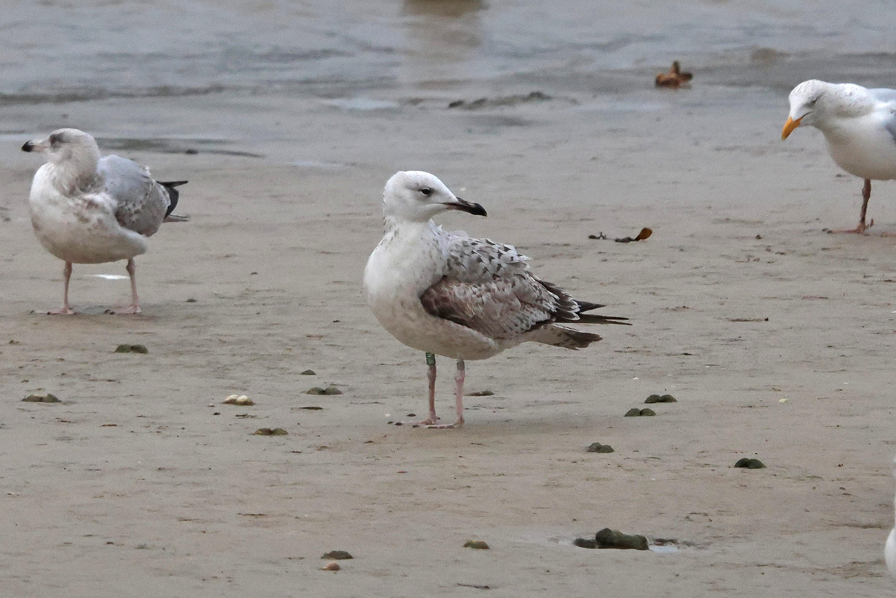 below: Caspian Gull cachinnans W|N 1CY, December 31 2025, Carballo - A Coruña, Spain. Picture: Pablo Lado.