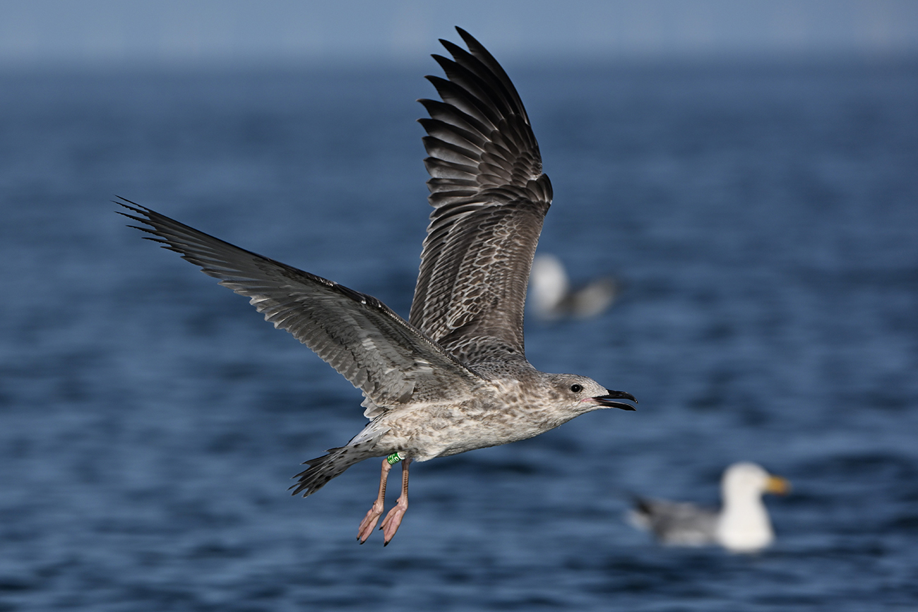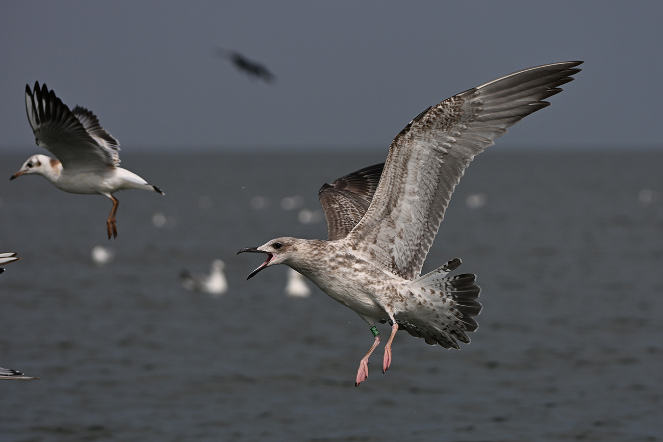 below: Caspian Gull cachinnans W|P 1CY, July 18 2025, colony De Kreupel, the Netherlands. Picture: Thijs Horst & Mars Muusse.