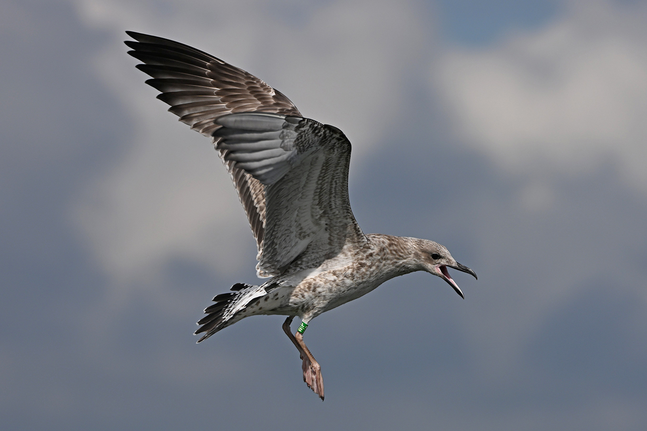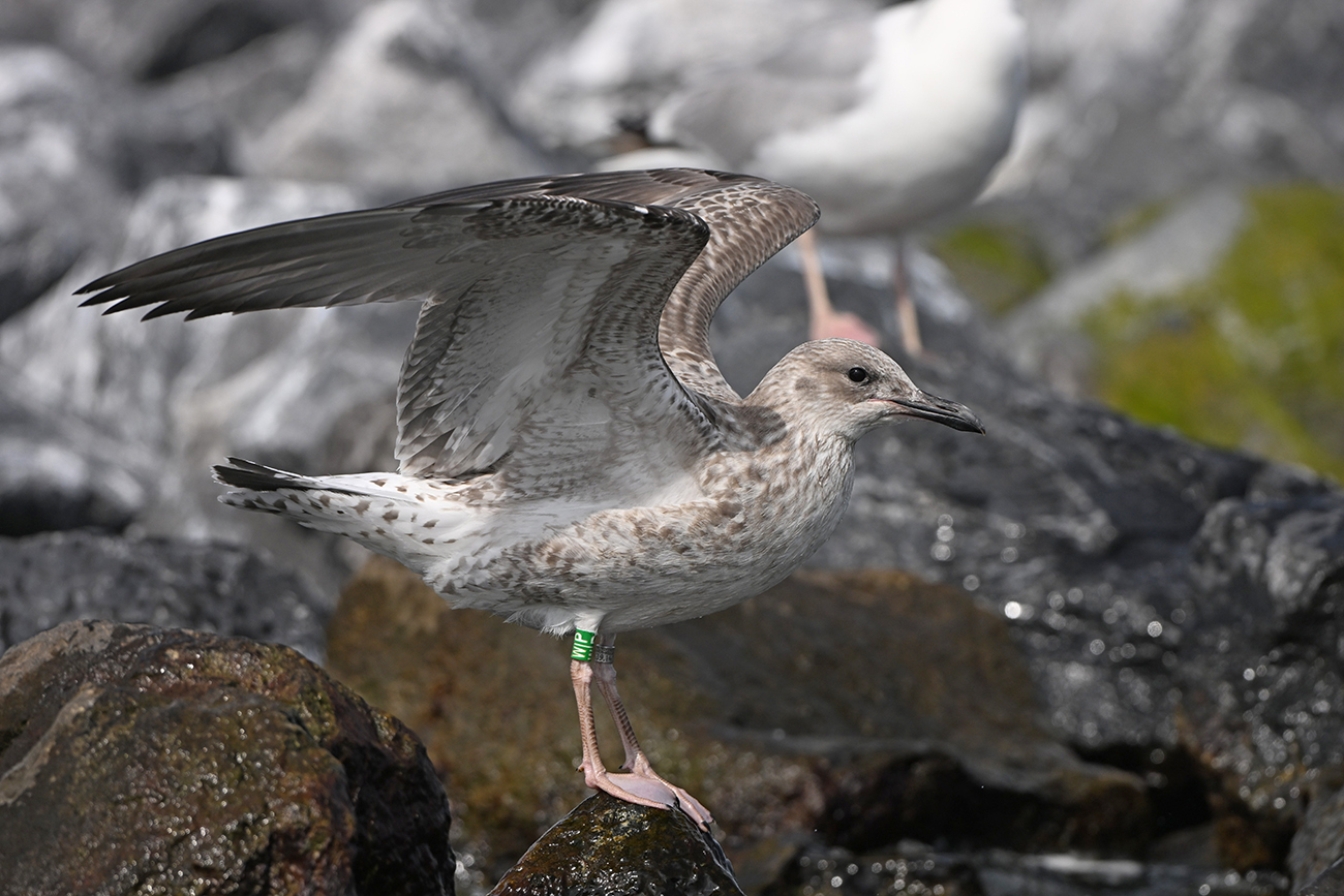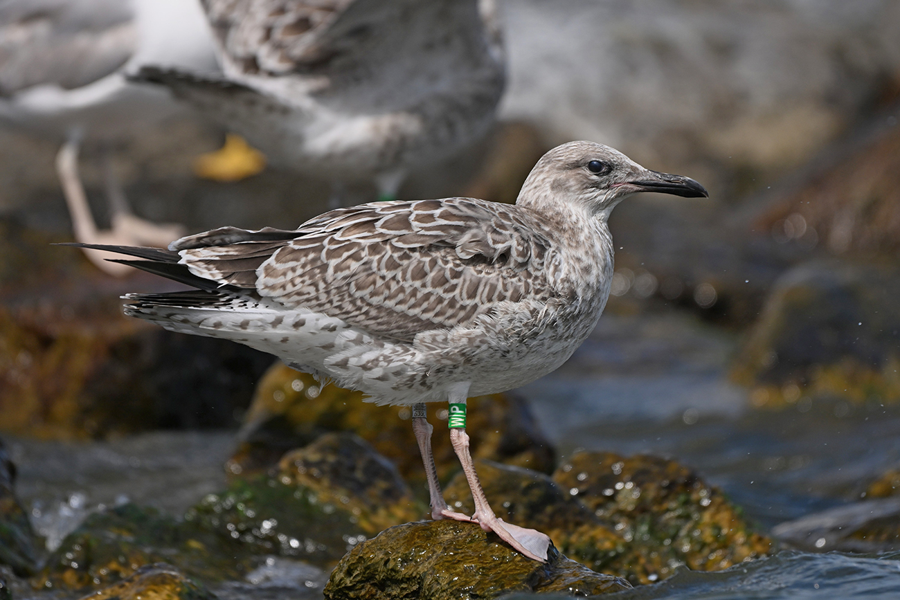 below: Caspian Gull cachinnans W|P 1CY, July 13 2025, colony De Kreupel, the Netherlands. Picture: Thijs Horst & Mars Muusse.