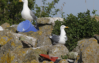| nest | April 21st, 2024: 3 eggs clutch, nest "Blue Bucket". | April 21st, 2024: 3 eggs clutch. | April 28th, 2025: Caspian Gull at nest. |