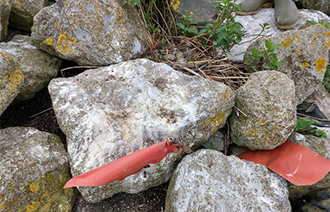 | location: | Nest "rode flap": at blocks, just west of open tarmac, was 'nest with the branch 2022', now with red flag and black root-cloth. | ||||||||||||