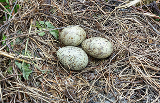 | nest | Nest "black table" on top of dam April 26th, 2021. | Nest April 24th, 2021: 3 eggs clutch. | Nest 15th, 2021: 1 hatched chick & 2 eggs. |