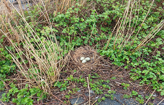 | nest | April 21st, 2024: situation at cluster. | April 27 2023: 3 eggs. | April 27 2023: nest at dam 2. |