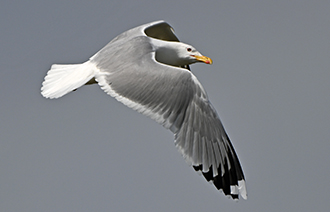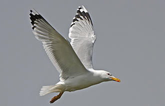 XCHP 5CY, April 11th, 2022. Complete solid sub-terminal band on P10, and, more important, P9 completely lacks a mirror. No mirror on P9 is rare in pure cachinnans of 5 years and older. | XCHP 5CY, June 21st, 2022. Head with rather short and high bill. Orbital ring red. | XCHP 5CY, November 7th, 2022. Iris turning paler, and note again rather short and high bill. |