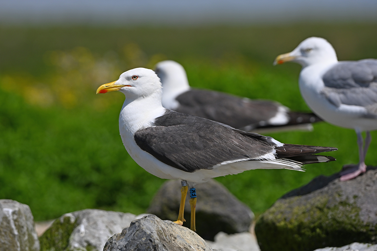below: Lesser Black-backed Gull graellsii FK 6CY, April 08 2025, colony De Kreupel, the Netherlands. Picture: Thijs Horst & Mars Muusse.