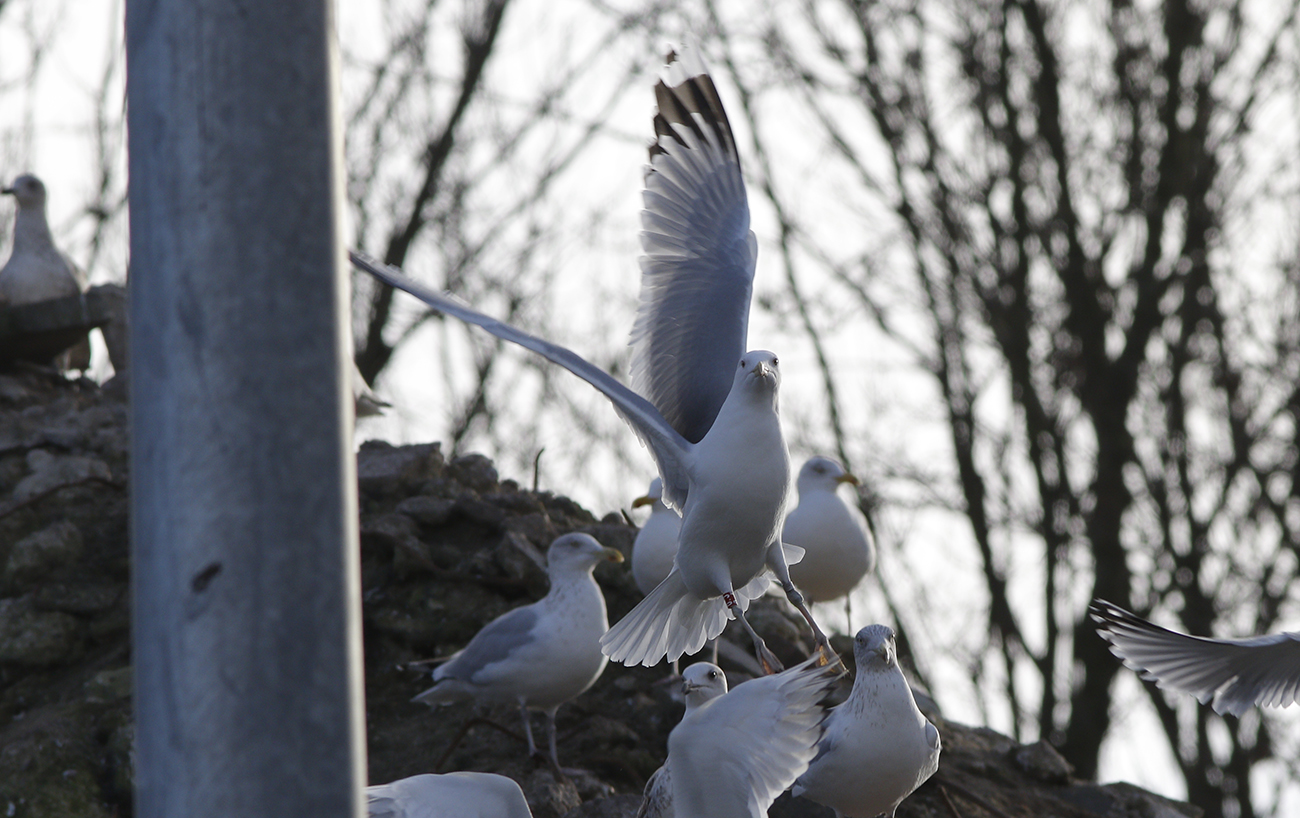 below: Caspian Gull cachinnans 0.J adult, March 04 2024, colony De Kreupel, the Netherlands. Picture: Thijs Horst & Mars Muusse.
