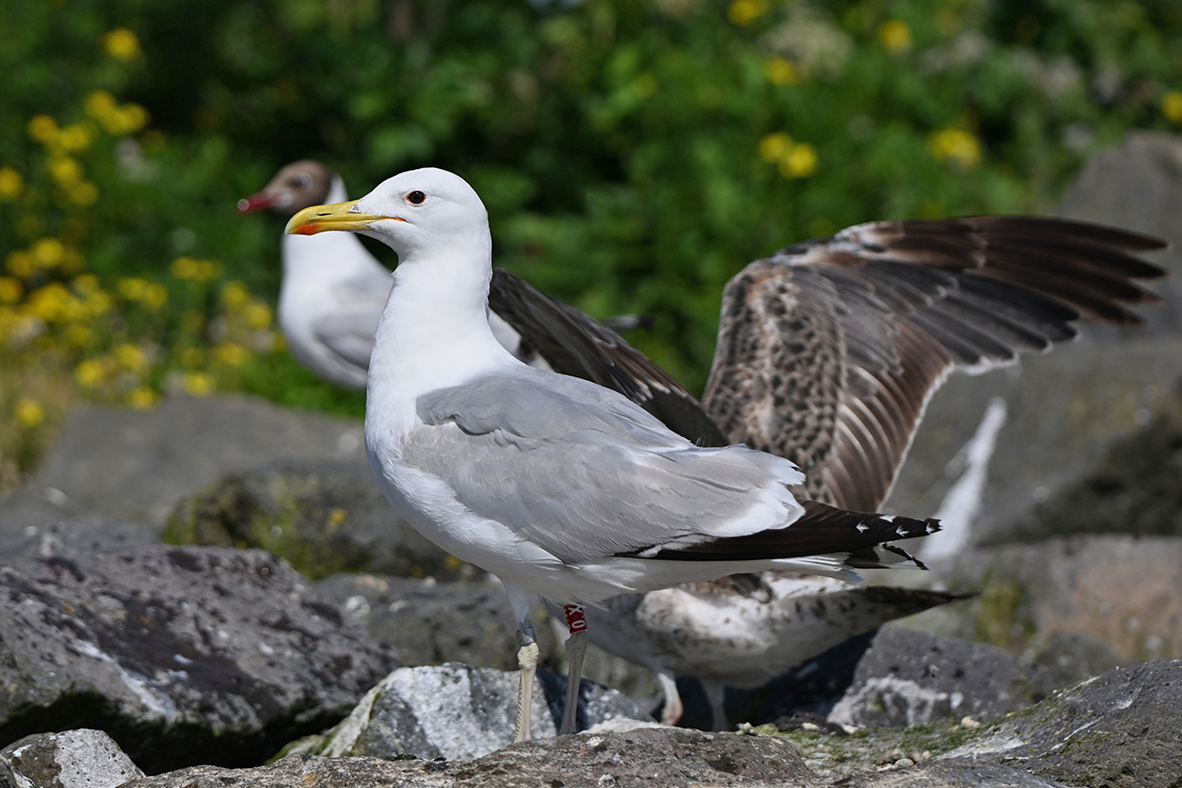 below: Caspian Gull cachinnans 0.X 4CY, July 13 2025, colony De Kreupel, the Netherlands. Picture: Thijs Horst & Mars Muusse.