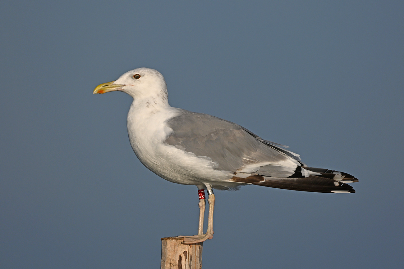below: Caspian Gull cachinnans 2.1 4CY, August 11 2025, colony De Kreupel, the Netherlands. Picture: Thijs Horst & Mars Muusse.
