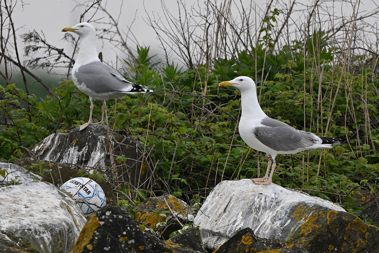 below: Caspian Gull cachinnans 6.M 4CY, April 23 2025, colony Lelystad, the Netherlands. Picture: Thijs Horst.
