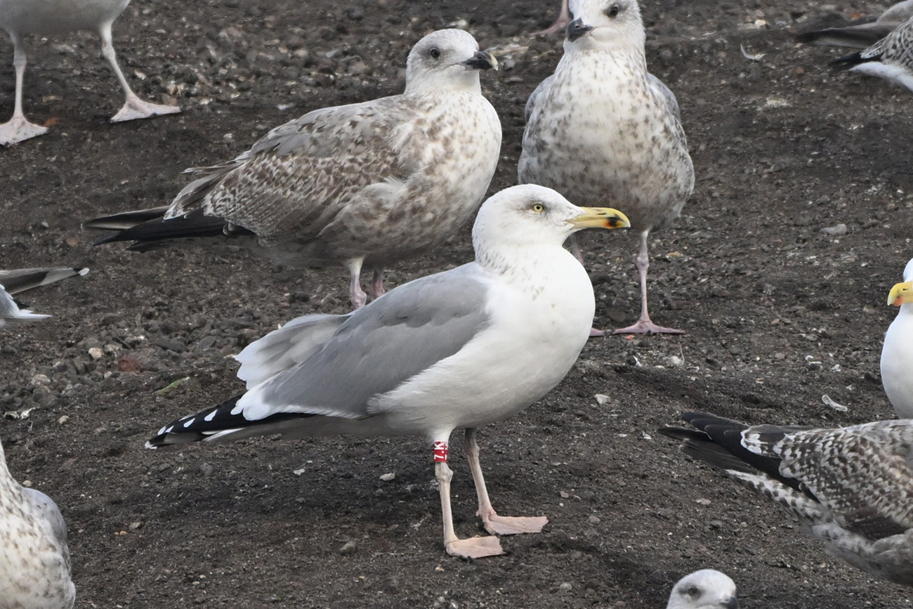 Yellow-legged Gull michahellis hybrid 7.K 1CY-5CY, 2022 - 2026, the Netherlands. Picture: Mars Muusse, Thijs Horst & Eric Roeland.