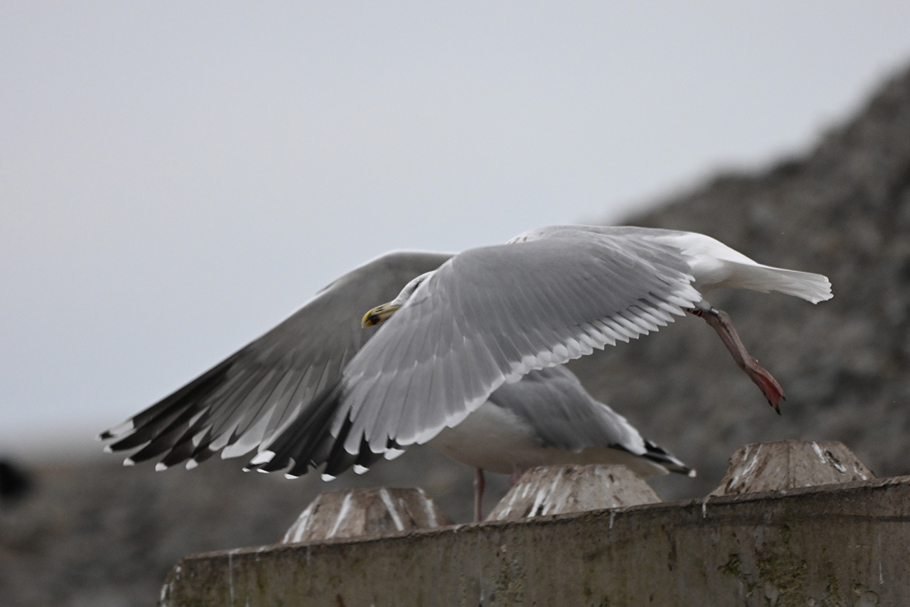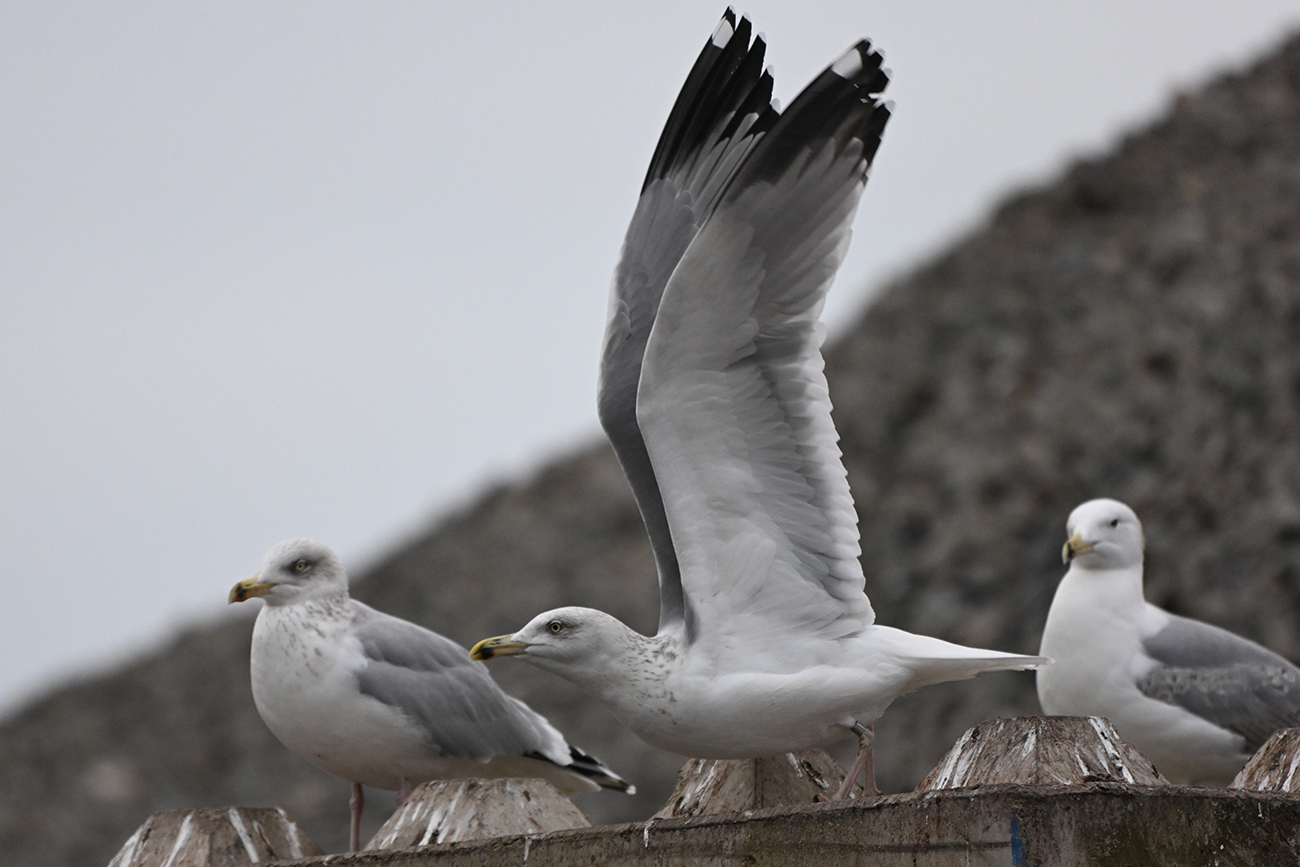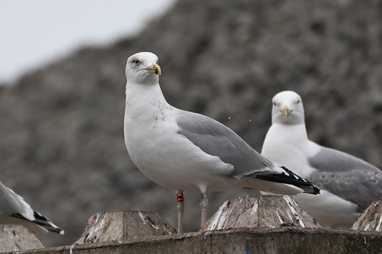 below: Yellow-legged Gull michahellis hybrid 7.K 3CY, February 15 2024, Almere, the Netherlands. Picture: Thijs Horst.