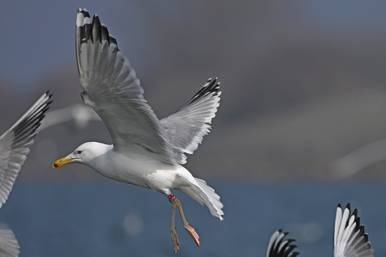 below: Caspian Gull cachinnans 8.= 4CY, March 08 2026, colony Lelystad, the Netherlands. Picture: Thijs Horst.
