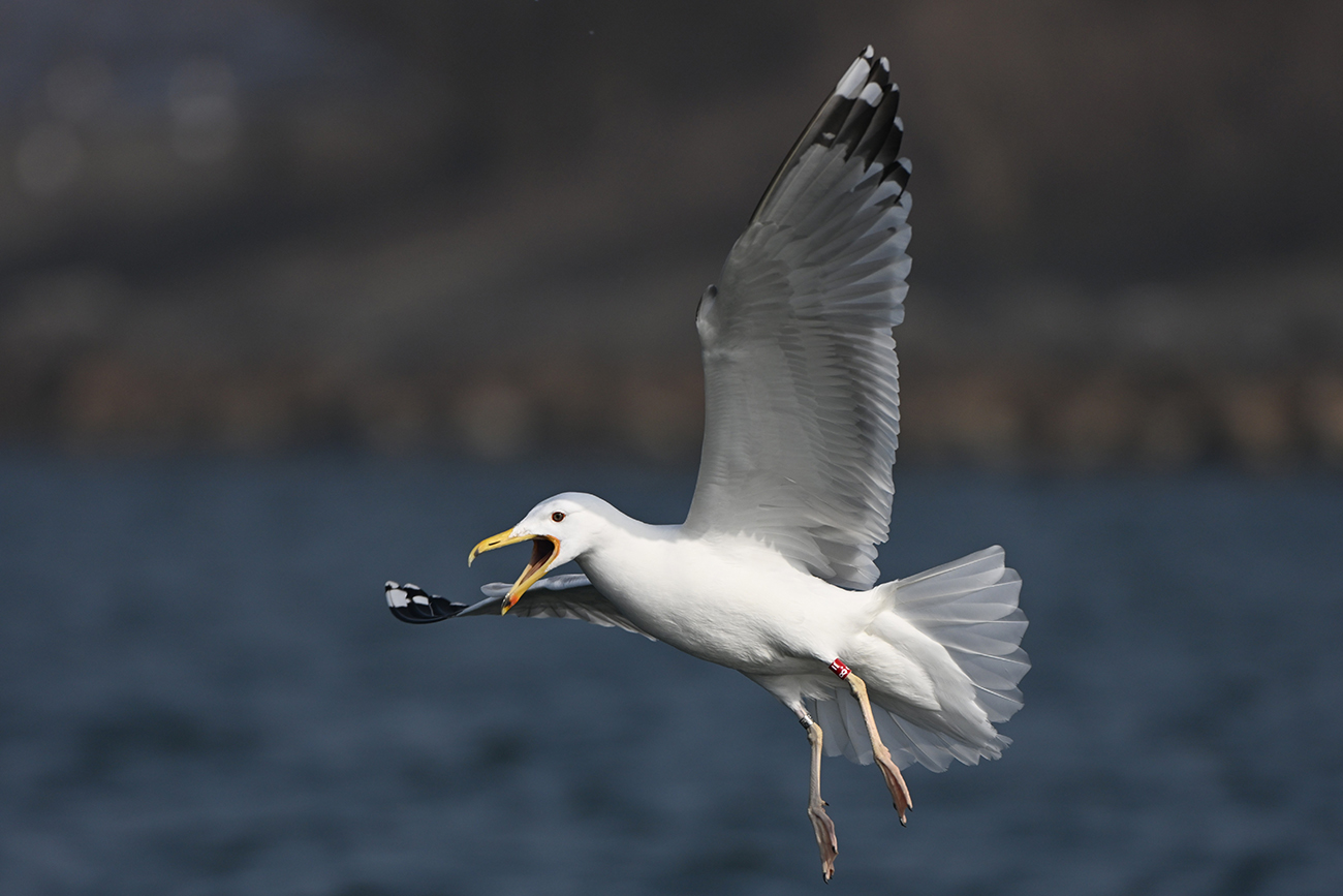 Tibia ring R-8.= and metal NLA 5.556.469, ringed as pullus Larus cachinnans on May 11 2023 in nest 60 at Lelystad, the Netherlands. Ringed by Roland-Jan Buijs ringing team.