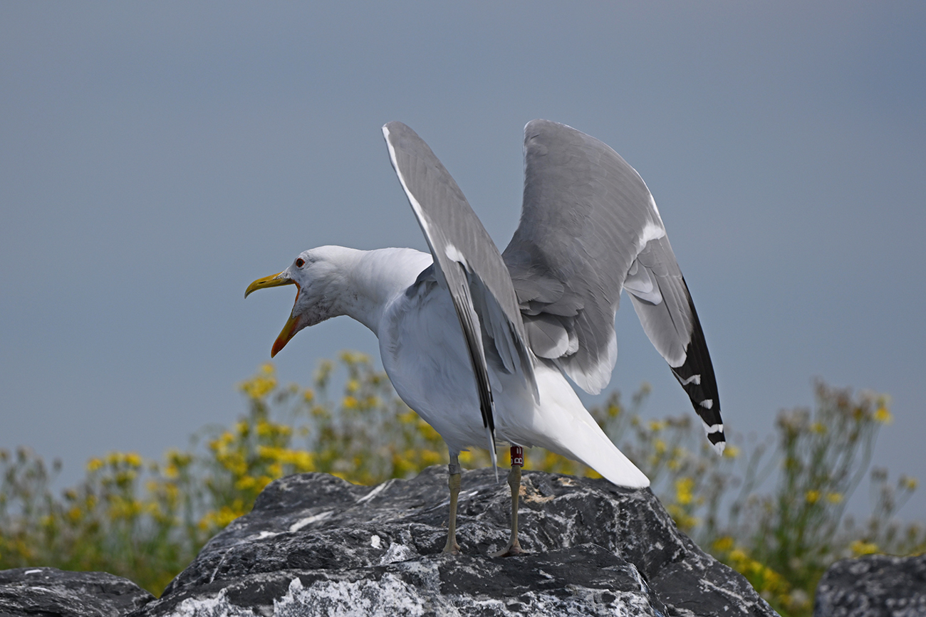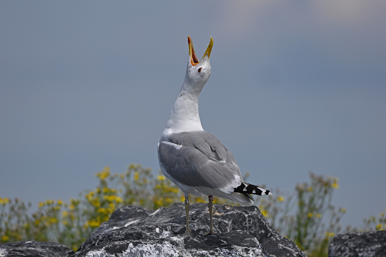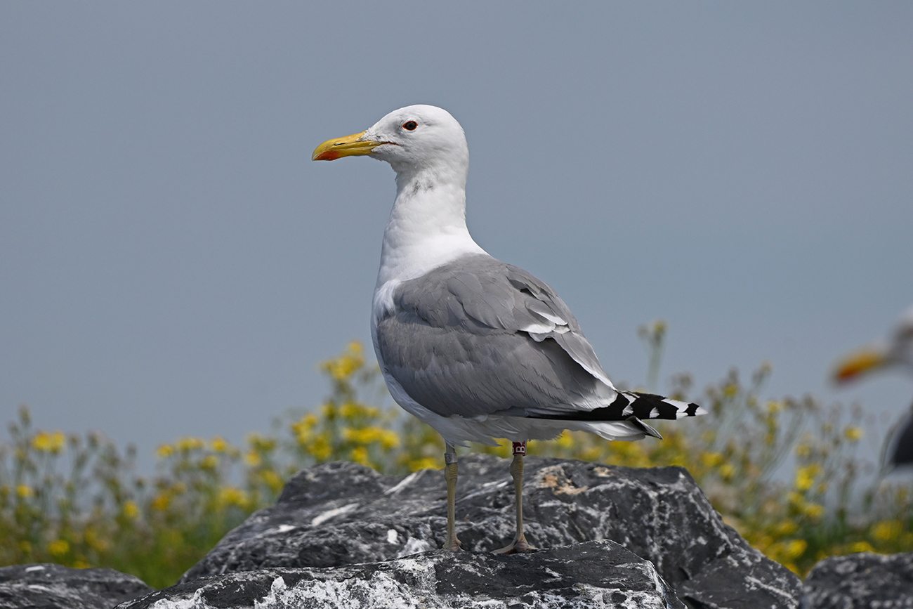 Tibia ring R-B= and metal ring NLA Arnhem 6.214.032, ringed as adult male Larus cachinnans on April 29 2022 at IJsselmeer (De Kreupel), Holland (5247.00 N 513.00 E) - ringer Roland-Jan Buijs.