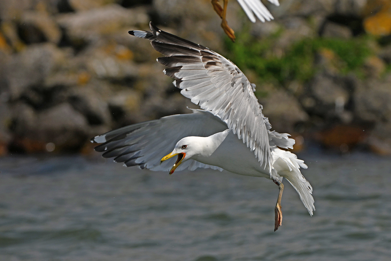 below: Caspian Gull cachinnans C.B 1CY, December 27 2022, Lekeitio - Bizkaia, Spain. Picture: Carlos Andrés.