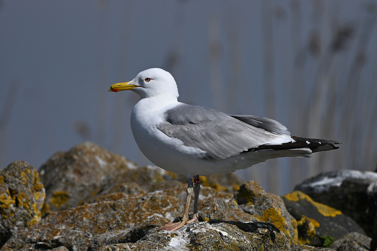 Red tibia ring r[C.B] and metal NLA 5.625.052, ringed as pullus Larus cachinnans at nest 60 on May 09 2022 in colony Lelystad, the Netherlands. Ringer: Roland-Jan Buijs.