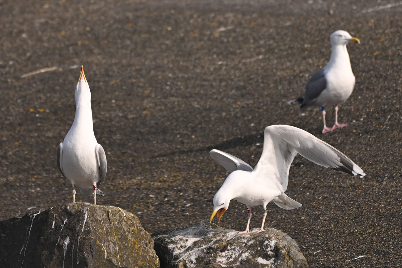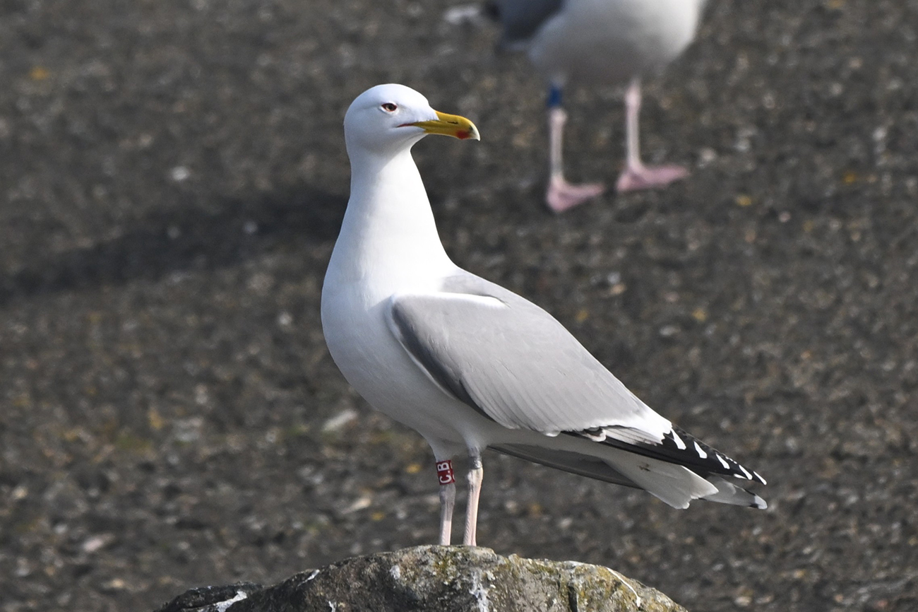 below: Caspian Gull cachinnans C.B 4CY, March 25 2025, colony Lelystad & Almere - De Vaart, the Netherlands. Picture: Thijs Horst & Mars Muusse.